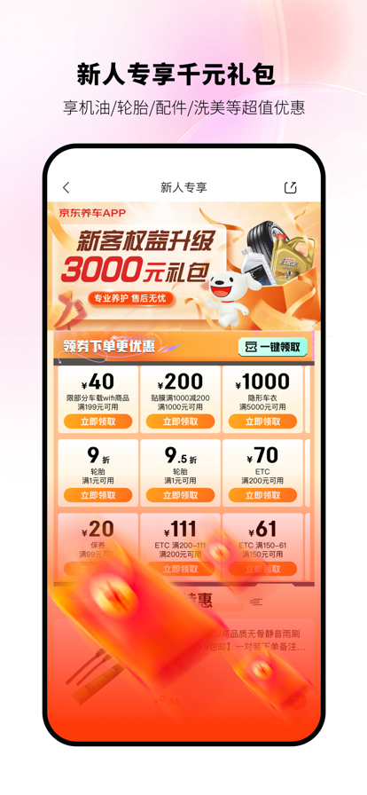 京东养车App是京东旗下汽车保养一站式平台,秉承着“养车来京东 有保障更专业”的服务理念,为京东车主提供更专业、更省心、更优质的产品和服务。用户可以在养车APP中,查看适配商品及服务项目,通过线上下单线下安装的方式,享受一站式养车服务;也可以随时在APP中查看服务进度、车辆档案、环检报告等保养维修记录,满足车主的日常养车用车需要、以及车辆全生命周期管理的需求。 【专业保养】 京东养车基于京东大数据技术,结合精细化人工选品,根据车型及行驶里程,精准适配商品及服务项目。推荐商品经过层层测试,保障品质及适配度,真正实现一站式自助保养。 【透明服务】 京东养车提供线上线下一体化的标准服务模式,到店履约全程透明。车主购买服务后,可使用APP预约到店,随时查看排队进度。到店后可在APP查看车辆档案、环检等详细报告,报价全透明,养车更放心。 【正品轮胎】 轮胎免费装,三年无忧质保!百万轮胎在线选,正品保障,透明报价,输入车型即可自动适配。超多门店包安装,破损包退换,为消费者权益保驾护航。 【新人豪礼】 千元豪礼相赠!清洗、美容、保养、轮胎、贴膜、配件等优惠多多! 养车来京东,有保障更专业!