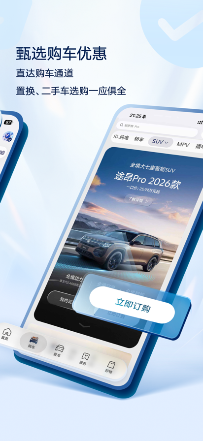 上汽大众超级APP,新升级,更好用! 更丰富的内容资讯,随时速查你想要的高质量信息; 更强大的购车功能,为你提供更专业的购车指导服务; 更有趣的车控体验,带你感受人车合一般的智能乐趣; 更贴心的用车服务,全程跟进你用车生活的所需所享; 快来开启你的出众生活! 上汽大众超级App为您提供Polo、朗逸新锐、朗逸、凌渡、帕萨特、途观家族、途昂家族、途岳家族、途安、威然、ID.纯电家族、ID. ERA等产品系列的亮点、活动及预约试驾。多款热门车型,诚邀您的品鉴。 【功能亮点】 汇集海量资讯:专业优质文章,内容聚焦一秒速查。 甄选购车优惠:直达购车通道,置换、二手车选购一应俱全。 玩转智能车控:智慧用车随行,虚拟车控在线即享。 尊享优选权益:16项+会员权益,贴心智能服务好生活。 趣创品质周边:周边随需上新,格调好物点亮生活。 【关于上汽大众】 上汽大众汽车有限公司(简称“上汽大众”)是一家中德合资企业,由上汽集团和大众汽车集团合资经营,中德双方投资比例各为50%。公司于1984年10月签约奠基,总部位于上海,累计产销超2800万辆,员工超2.6万名。 未来出行,为你而来。在汽车行业转型变革的新时期,上汽大众将坚持以创新驱动发展,并始终以市场为导向,不断提升用户满意度,打造“值得信赖、最具价值、富有创新精神的汽车合资企业”。 更多资讯请关注: *官方网站:www.svw-volkswagen.com *24小时服务热线:400-820-1111 *电子邮箱:callcenter@csvw.com *微信公众号:CSVWVW *微博:@上汽大众大众品牌 *抖音:上汽大众大众品牌 *小红书:上汽大众大众品牌