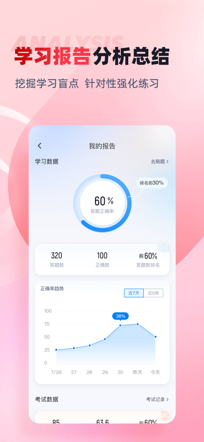 聚思云在线APP是聚思专升本旗下的一款针对备考专升本的学习软件,专注于为专升本学子提供一站式专升本备考学习平台,APP内囊括了志愿填报、高等数学、大学英语、大学语文等精品录播课,并提供配套优质学习资料,满足不同阶段学子的备考需求。 [考情动态]及时更新院校信息与教育部资讯,招简、大纲、分数线,你想知道的都在这里; [升本干货]历年专升本真题在线阅读/下载,动动手指就能建立自己的资料库; [在线课程]超多好评的备考提分公开课免费听;VIP优质课程助力高效复习; [单词闪背]基础、高频、超纲词汇随时背,更有核心词汇搭配“闪背"功能高效刷词; [题库测验]学的怎么样不知道?在线题库海量测试题供你作答,知己知彼方能百战不殆; [每日计划]拯救“拖延症患者”一次制定每日提醒,妈妈再也不用担心我复习了。