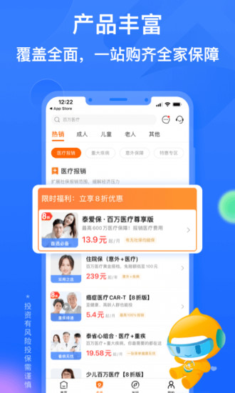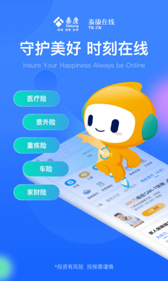 “泰康在线”将保险科技应用于互联网保险业务的创新与开拓,整合线上、线下保险服务,为用户提供更实惠、更安心、更便捷的保险产品及服务,构建“活力养老、高端医疗、卓越理财、终极关怀”四位一体的互联网大健康生态圈。 【保险商城】 60秒线上极速投保,智能保险顾问7*24提供个体化保障建议; 提供互联网财产险、境内/境外旅行险、健康险、意外险、车险和投资连结险等40余款创新型保险产品; 【健康管理】 整合线上线下医疗健康服务资源,为客户提供在线问诊、寻医问药、快速就医等全方位健康管理服务; 【财富管理】 全明星产品盈e生投资连结保险,背靠强大投研团队-泰康资产; 6大经典账户,助力您进行全方位的资产配置; 投资收益,随时查询,账户转换,尽在掌控; 【会员服务】 保单服务弹指间轻松搞定,在线申请,极速理赔,安心无忧; 全新会员成长体系,5大等级30余项会员增值权益; *****关于泰康在线***** 首家由国内大型保险集团发起成立的互联网保险公司,也是国内首家通过保险类CA认证的网站,泰康在线连续三年蝉联“2018胡润新金融百强企业”。
