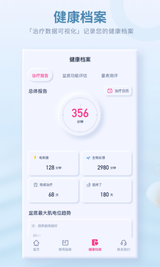 大悦盆底肌是一款配合大悦盆底肌治疗仪使用的专业级家用型App,具有盆底功能评估、标准化治疗方案、个体化治疗方案、自由锻炼方案库、健康档案等功能,「大悦盆底肌」App,帮助女性摆脱盆底健康、性健康和生殖健康等问题的困扰,助力2亿妈妈悦享健康优雅人生! 盆底功能评估:提供盆底肌筛查,出具评估报告。便于用户掌握盆底肌的整体状况。 标准化治疗方案:提供多种方式进行盆底肌保养,盆底肌治疗,治疗阴道松弛症 提升女性性功能,在家足不出户轻松完成治疗。 个体化治疗方案:提供个体化的定制治疗方案,VVIP专属康复师一对一定制计划。 自由锻炼方案库:提供海量方案库,让用户自由选择方案治疗锻炼。 医学科普:提供科学的医学常识。 使用指南:提供完整详细的使用视频,帮助用户快速掌握产品使用方法。 健康档案:可视化展示用户的治疗数据分析,记录治疗过程和成果,健康数据一目了然。