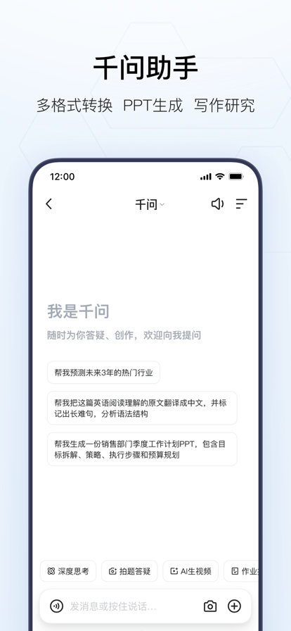 夸克是AI旗舰应用,使用阿里最强Qwen大模型,推理、理解、执行能力强大。 夸克提供搜索、助手与云端服务,无论你在学习、办公、创作或生活中遇到什么问题,夸克都能即时响应、深入分析,并给出清晰、专业的解决方案,为你带来高效、全面、可信赖的 AI 体验。 【千问助手】 最佳助手,使用Qwen最新的模型,为你提供专业、高效的高质量解答。它基于优质知识源与强大的推理能力,在复杂场景下也能输出权威、准确的答案。 先进模型:多模型可选,既适合日常问答写作,也适合科研级推理、公式计算等复杂的多步骤决策场景。 深度搜索:具备强大的推理与执行能力,擅长处理复杂逻辑与多步骤决策。 文采出众:从公文、论文到社交媒体文案,支持全体裁、多场景写作。多种文风,用语得体。 表达清晰:回复结构化呈现,含图表与分点描述,复杂信息一目了然。 多模理解:文字、语音、拍照都能对话,还可以上传文档、提炼要点、转换格式。 【AI搜索】 高效检索: 查资料、看资讯、找答案,夸克帮你快速找到最合适的结果。 智能理解: 搜索更懂你,自动理解意图,答案更贴近问题。 AI 总结: 即时生成摘要,汇总重点信息,让复杂问题一眼看懂。 结果优化: 搜索结果更直观、更智能,节省时间更省心。 纯净体验: 界面简洁无广告,信息更纯净,让搜索回归本质。 【AI生产力工具】 AI写作:全体裁写作,写方案、报告、文案,都能一句话生成,逻辑流畅自然。 拍题批改:拍题答疑,难题讲解详实准确,学习效率倍增。 夸克PPT:输入主题即可生成专业演示文档,自动排版与结构优化。 夸克扫描王:拍照识别文字与表格,自动提取、整理、总结。 夸克翻译:多语言即时互译与语义理解,阅读外文网页更顺畅。 【夸克小说】 海量书库: 百万级正版藏书,都市爽文、言情穿越、悬疑探案、玄幻修仙,应有尽有。 极致阅读: 排版清爽、操作便捷,沉浸阅读更舒适。 AI 听书: 多音色自然朗读,声音流畅真实,沉浸体验更生动。 【夸克网盘】 超大空间:6T超大空间,照片、文件安心存储。 多端同步:手机电脑随时看。 超级播放器:高清画质、AI字幕,沉浸式观影体验。 如果你在使用产品过程中遇到了任何问题或需要我们协助,请通过以下方式联系我们,我们将尽快处理! 反馈方式: -软件反馈:设置->意见反馈 -邮件反馈:kksupport@service.alibaba.com -官方网站:http://www.quark.cn 自动续费规则 1.用户协议 https://terms.alicdn.com/legal-agreement/terms/b_end_product_protocol/20230516173016165/20230516173016165.html 2.隐私条款 https://terms.alicdn.com/legal-agreement/terms/suit_bu1_uc/suit_bu1_uc202002251416_20839.html 3.订阅网盘会员服务会通过iTunes账户直接支付 4.在订阅服务到期前24小时,系统将按订购类型进行自动续订和扣除相应费用 5.如需关闭连续包月服务,请至少提前24小时在“账户设置”中进行操作 查看应用程序用户许可协议: https://www.apple.com/legal/internet-services/itunes/dev/stdeula/