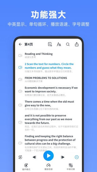 高中英语教材智能点读,高考专题复习。 【教材点读】新课标高中英语新版教材的单词和课文,高清原声配音,可跟读、可点读(支持中英双语朗读)。 【教材精讲】课文知识点全面解析,比老师课上讲的还详细,搭配精选习题,边学边练。 【听力练习】高中英语听力练习,由简到难,逐步提升听力水平。 【高中语法】高中阶段语法大全,讲练结合,语法全掌握。 【高考复习】听力、单词、书面表达、完形填空、阅读理解等各项专题复习。历年高考听力真题演练,高考听力模拟练习。 【课文搜索】在日常学习过程中,输入某个单词,可以自动搜索课文中包含该单词的所有句子。让单词的学习与教材更加紧密结合。 【离线词典】英语离线词典,快速查询单词释义和用法等。 【其他功能】复读机功能、单词听写、单词发音校准、朗读语速调节、夜间护眼模式等,让你学习更舒适。 APP备案编号:湘ICP备19023207号-8A