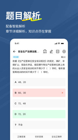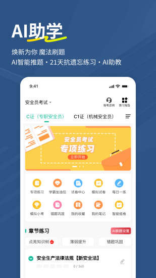 安全员ABC证考试刷题宝典! AI助学焕新上线,章节刷题结合AI智能推题精准定位薄弱环节,结合艾宾浩斯遗忘曲线研发"21天抗遗忘训练",让知识点过目不忘,涵盖了章节练习,历年真题,预测试卷以及题目解析,每个科目独立题库,分类明晰,结合AI智能刷题、AI解析拓展、错题巩固、统计分析、模拟考试等多功能模块,,解决安全员A证、安全员B证、安全员C证考试备考刷题,高效学习备考,比看书节省时间,帮助您在考试路上省时省力。 【题库功能】 >>练习: 【章节练习】题库内所有科目的章节练习均可免费使用。 【历年真题】收录近5年安全员考试真题,与考试亲密接触。 【高频题目】大数据分析安全员考试高频题目,备考重点难点一网打尽。 【错题巩固】独特错题巩固功能,清除安全员备考路上的顽固障碍。 【AI解析拓展】每个题目新增AI解析拓展,帮助您全面了解知识点。 【AI智能推题】个性化推送薄弱知识点+顽固错题+抗遗忘特训题。 【学习资讯】备考资讯,官方通知,复习技巧尽在安全员练题狗。 【技术支持】鼎维云课堂 【联系我们】 微博:@练题狗 微信:liantigouapp 客服电话:+8618290463382