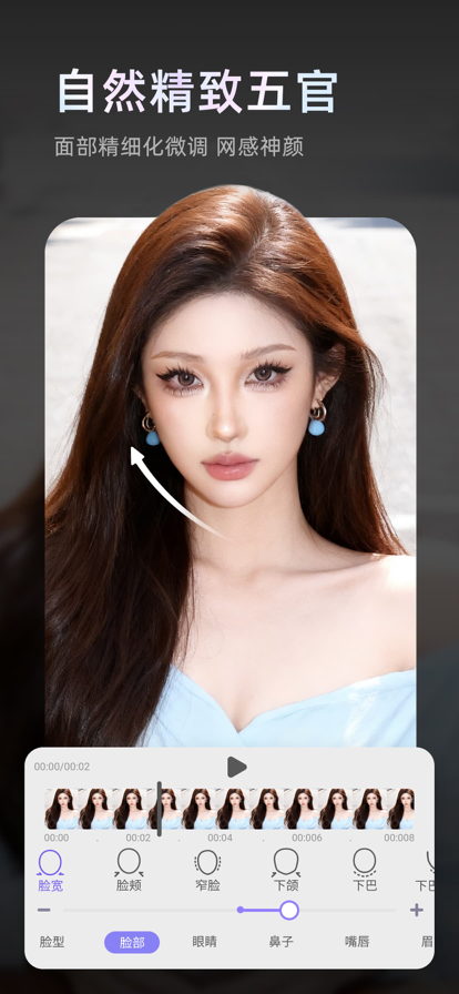 PrettyUp是一款好用出色的人像视频和修图瘦脸美颜美体软件。拍出来的视频效果不理想?想拥有更完美自然的效果?这款功能强大的人像视频美化神器和图片编辑工具不容错过!PrettyUp同时支持视频和图片的导入编辑,自然美颜美白,轻松还原美貌,修出高级美。画发丝、Live2D木偶动画结合建模脸、成男体、智能修手等功能,从建模脸蛋身材到完美动效,coser还原角色完美成片只需动动手指,轻松修出官图级漫展高清大片。 还在为拍摄视频和照片时表情不佳、肢体僵硬而烦恼吗? 镜头畸变导致脸歪腿短?总拍出尴尬表情或小短腿?Prettyup帮助您一键还原美貌+优化身材脸部,秒解修图难题!简单几步即可手机精修自拍/Vlog/日常视频人像:五官重塑、一键小脸、美颜磨皮、人像美白、一键瘦身、自动拉长腿……场景AI画质修复拯救模糊废片,更支持AI发丝精修补发缝+COS照眨眼飘动特效,千元级精致cos照不求人随手出。新增视频背景保护、闪光灯光线修复,背景不再乱动,死亡光线也不怕,轻松实现视频/面部/身材三维美化,360°无死角塑形,手机直出高清质感大片,实况照片Live图实时精修——快来体验这款黑科技P视频神器,烘焙你的专属美味像素芝士! 重塑身材 & 微调身体 -瘦身相机:一键人像美体,瘦身细腰拉腿,轻松获得苗条火辣身材,拍出自信美照。手动辅助线精准调节,长腿瘦身效果自然无破绽。 -长腿瘦身:自然拉长腿p腿,修出网红视频大长腿。 -瘦腿美体:视频瘦腿瘦身拉长腿,超自然的身材脸部优化,完美腿型秀出来。 -智能美体:打造身材曲线,施展赘肉消失术,穿什么都惊艳。 更有智能成男宽肩窄腰,无需健身便可拥有完美成男身材! -智能增肌:智能黑科技一键生成瘦腰马甲线、紧实腹肌和清晰锁骨。身材修图如此简单! -智能修手:一键生成修长手与成男手,手指纤长线条清晰,coser儿童手秒上镜! 脸部修饰 & 五官重塑 -视频瘦脸相机:轻松重塑微调脸部,面部优化,自然捏脸,一键瘦脸小脸,修出完美脸型。 -面部提拉:一键提拉紧致轮廓,打造立体小v脸,告别松弛扁平感。 -面部丰盈:提升面部平整度,打造饱满上镜脸。 -五官立体:加深全脸立体度,重塑T区高光阴影,鼻梁眉骨原生挺拔,打造立体骨相。 -视频手动修脸:手动推脸精准调控轮廓,视频也能轻松修出建模脸。 -大眼神器,自然放大双眼,加深双眼皮效果,让视频中的你永远闪亮大眼睛。 -微调高鼻,拥有精致立体高鼻不是梦。 -轻松视频美颜,调出喜欢唇形,亮唇提升好气色。 -自然修眉,超好用的美眉相机。 美颜美肤 & 脸部优化 -肤色美化:视频人像美白美体,一键冷白皮,视频一键美颜,轻松p出气质氛围感。 -肤质优化:磨皮消除皮肤小瑕疵,让皮肤光滑光亮,均匀肤色,让肌肤完美无瑕。 -一键去瑕:黑科技智能美颜,去除瑕疵、斑点、痘痘、痘印和粉刺,优化面部皮肤质感。 -智能去皱:抚平皱纹,轻松祛眼袋、祛法令纹,美图美拍每张图片和每个视频。 -眼部精修:亮眼让视频中双眼闪亮有神,自信出彩。 -一键美化:建模感cos一键生成,不卡建模也可获得超精致厚涂感成片,自然风热机感任你选择。 美颜滤镜相机 & 滤镜编辑调色工具 -智能打光:智能3D打光轻松模拟多种光效,冷白闪光灯、美黑闪光灯...轻松适应背光、逆光、光线差等场景,拯救相册废片。 -丰富滤镜:海量网红滤镜资源,美白滤镜、自拍滤镜、美颜滤镜、复古滤镜、网红滤镜、欧美滤镜、胶片滤镜、Ins滤镜、电影滤镜等等,多款滤镜风格(日系日杂滤镜、港风滤镜等等)持续上线中,专为质感自拍打造。 -百变调色:滤镜调色大师,超多好用调色工具:亮度、对比、饱和度、自然饱和度、锐化、氛围、高光、阴影、结构、色温、颗粒、曝光,轻松调出大片风格,精准掌控画面色彩。 -美颜相机:专业美颜相机苹果模式,自然清透色调,自拍不吃妆,还原原生美貌。 超实用照片 & 视频修复编辑神器 -黑科技画质修复,轻松修复老照片视频,拯救手抖模糊废片,提高视频画质,还原清晰美貌,高清颜色质感。原相机生图质感,轻松拍出博主同款网感自拍。 -黑科技视频补帧,一键拯救卡顿、掉帧视频,让视频纵享丝滑。 -保存自己的专属美颜视频配方,p图p视频一键美颜,懒人必备轻松出图。 -超丰富视频滤镜+爆款风格特效,一键背景虚化,突出人像,自拍视频氛围感up up! 工具箱 & 专业P图神器 -画质修复:像素级细节修复,救模糊废片至4K高清,睫毛都清晰可见。Cosplayer模式拯救漫展高糊废片,自拍也能变成超清正片照。 -live2d:支持眨眼、发丝飘动、肢体摆动等动效,快速实现木偶感动效,静态图片秒变漫感动态视频。支持多图层精细化调整,可添加花瓣、竹叶等飘落特效,让场照精致动起来,coser解放双手后期必备。 -生成美发:百变发色发型编辑器,随心所欲换发型,质感升级,秒get精致到发丝的氛围感。 -画发丝:接发、增发、美发随心自定义,轻松涂抹生成飘逸发丝。支持厚密、刘海、辫子等模式,分模式精准生成多种风格发丝,做coser自己的女娲毛娘。 -智能消除笔:神奇橡皮擦,路人消除神器,有效去除水印、马赛克和背景杂物。 -智能扩图:背景一键生成神器,自由智能扩图,拓展还原背景。 -智能写真:高科技写真馆帮你拍写真,专业级头像设计,生成最美证件照。AI背景智能生成百变场景,写真大片一键制作,二次元超真实正片无需外拍棚拍也可轻松Get。 -智能绘画:动漫头像生成器,轻松让图片变漫画,