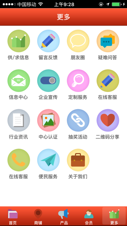 随时随地了解教育培训资讯、尽享免费咨询便利。 【商铺】:本应用专门为用户提供各商铺信息咨询的平台,用户可以快捷地从这里了解商铺。 【供/求信息】:本应用利用列表的形式清晰的展示出各种产品的供求讯息。 【产品】:本应用提供相关各种产品分类,方便客户查询购买。 【会员】:用户可以通过这里注册自己专属的会员帐号。 【留言反馈】:用户可以把意见和建议以及评价等信息反馈给商家,以提高服务质量。 【二维码分享】:二维码图片由运营商通过后台上传更新。 【朋友圈】:随时发布话题讨论,形成同行、商圈的朋友圈,增强互动。