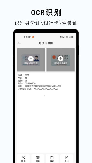 扫描全能王OCR是一款集拍照识字、文件扫描、证件扫描、表格识别等功能于一体的手机扫描仪。能够准确识别图片中文字,可以随身携带的手机扫描仪,并且支持生成Excel文件、照片转PDF、提取图片中的文字;并且可以将文档轻松分享到邮箱、微信、QQ等平台。 【文件扫描】 支持高清扫描单张文件、多张文件或书籍等,快速生成PDF扫描件,扫描件可调整色彩、亮度等 【证件扫描】 支持身份证、银行卡、护照等证件识别扫描,自动1:1适配到A4纸上,可自定义添加防盗用水印。 【拍照识字】 扫描识别各种文件、图片、书籍、名片等并提取想要的文字,可对识别的内容进行编辑、复制;智能剪裁,移除杂乱背景,自由截取文字内容或单独区域,识别结果自动分段;识别结果可即时翻译,支持多种语言的全文互译,以Word格式导出。 【表格识别】 支持表格、表单识别,智能解析表格文字,快速生成Excel表格文件。 【图片生成PDF】 直接相册导入图片,并可裁剪、滤镜、排序、替换等操作,重新生成并导出全新的PDF文件。 【试卷去手写】 将试卷拍照或导入,系统自动去除试卷的手写笔迹,并可以裁剪旋转、自定义清除笔迹和添加批注,重新生成并导出PDF格式、图片格式和Word格式。 【老照片修复】 将老照片拍照或导入,选择照片清晰或照片上色的功能,智能修复老照片。 【扫描计数】 选择计数类型,拍摄或相册导入进行扫描计数,系统智能识别图片中的数量,支持计算钢管、钢筋、盘扣斜杆、轮扣、方管、圆木、方木等。 【面积测量】 拍摄或相册导入进行面积测量,在图片上拖动绘制需要测量的面积区域,输入实际边长,系统会快速、智能计算区域面积。 ---使用建议--- 为确保您能获得清晰的扫描图,请在拍照时:保证光线充足,尽量避免抖动。