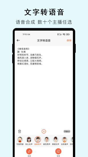 包含视频转文字、链接转文字、图片转文字、拍照转文字、音频转文字、录音转文字、文档转文字、身份证识别、银行卡识别、驾驶证识别、翻译、文字转语音等功能。 支持将识别后的文字编辑调整、翻译、copy以及导出为word、txt格式。 【功能介绍】 1. 视频转文字:选择本地视频一键提取文字。识别率高! 2. 链接转文字:copy短视频链接,一键提取文字。 3. OCR识别:身份证、银行卡、驾驶证识别,快速拍照或本地导入,即可快速识别! 4. 录音转文字:支持实时录音识别,将录音实时文字提取。极大的提高您的工作和学习效率! 5. 文字转语音:输入文字,数十个主播选择,一键保存文案和音频。 视频提取文字带你轻松提取文字!