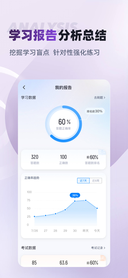 【简介】 题有方专注军队文职考题研究与押题练习,二十多个方向的科目齐全,单科多则近万道题,少则数千道,能满足军队文职考证的刷题需求。 通过上百名教研团队10余年考试研究经验,8年+课题研究经验,为每一个考生提供专业、科学、多维度练习,且更适合自己的好工具! 【功能特点】 1. 真题考练 历年真题均具备深度专业解析,打造模考和练习两种场景; 2. 章节练习 根据每年考纲及教材章节、知识点,精编试题,力求考生能吃透每一个知识点; 3. 水平测试 随时进行实力测验:智能组卷、章节测验,还根据大数据计算,定制合适的试卷; 4. 学习报告 专业学习报告,章节薄弱点一目了然,专项学习提升,事半功倍; 5. 考前密卷 考前最后的押题卷,名师精遍,查漏补缺,精准提分; 6. 精简必刷 少刷题,多得分,做一道题,会一类题。 7.高频错题 全站易错题集锦,错题也可重练,难题重点反复练习。
