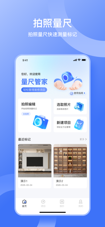 量尺管家能快速编辑、标记图片,提高装修量尺效率,简化记录,促进工程进展。包含拍照量尺、施工报价、材料报单、资料合同、施工日志等多种功能,支持多人协同、成本协同,适用于装修师傅、工程管理人员等。让现场测量准确无误,团队和谐高效,项目管理更细致。
