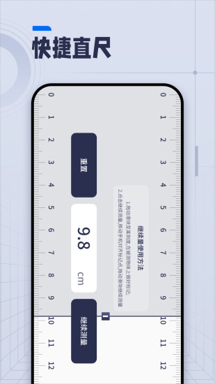 测量仪是一个增强现实(AR)测量应用,基于最新的AR技术将你的手机或平板镜头瞬间变成一把精准的量尺。它可以进行水平测量和垂直测量,测量物体的长度、角度、高度和面积。还可以将测量结果保存在历史记录里,并支持下载方便您分享。 包含多款小工具的合集,集AR测距仪、尺子、量角器、水平仪、指南针、手电筒、分贝仪等工具于一身,不再需要使用多个APP,而只需一款集成多个小工具的APP,便可解决日常的小问题。 1.量角器 简明量角器,可实现角度随意进行切换,对实物拍照后进行测量器角度。 2.尺子 以手机边长作为测量刻度,测量物体长宽 3.指南针 快速定位辨别方向东南西北角度测量 4.铅垂线 简明定位垂线,辅助挂画、挂对联, 实现挂置物体是否是在一个水平的位置,帮助强迫症实现没有误差。 5.分贝仪 测量周边环境噪音分贝值,本功能可以测试噪音的分贝,透过噪音测试仪测试是否在一个嘈杂的环境中。 6.加速度 测量当前手机的运动加速度 7.手电筒 新增手电筒功能,让你更方便照亮环境 8.其他 包括温度、光感、压强、重力、计步器、湿度 部分需要相关设备或硬件才支持