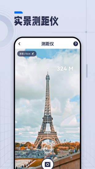 测距测量仪是一款精准的高度测量工具测量软件,通过手机相机镜头和传感器来快速测出物体距离和高度。无论你是建筑师、工人还是居家临时需要测量的,只要打开手机输入自己身高,你就能测量出建筑物的高度、房屋测量、树的高度、家具的高度等;还能量出物体的距离、行距。 小巧的应用,同时集合了量角器、直尺、分贝测量、手电筒、指南针及水平仪等户外常用测量工具。 产品功能: 【距离测量】输入你的身高作为参考,将靶心分别对准物体的底部和顶部拍照,即刻测出物体的高度,方便快捷。你还能测出其他人的身高 【量角器】无论室内室外,当你需要量角度时,打开量角器中心对准测量订单,量角器水平线与物体水平线保持平行,滑动量角器上的参考线就能测出角度 【直尺】适用于测量小型物体的长度,让你的手机成为一把直尺 【功能齐全】软件功能齐全,你可以测室内外的分贝;户外运动时你可以用到指南针来探索方向,确定经纬度;可以用水平仪进行水平和垂直角度测量;还能进行单位的换算,让手机成为你的口袋工具箱。