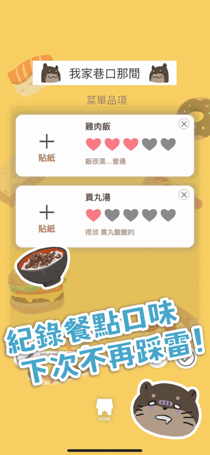 常常吃過的店家,下次就忘記好不好吃嗎? 美食筆記替你記下來! 透過簡單的紀錄以及可愛的心情貼圖, 讓你不會再次踩雷 :D 另外也有下次想吃的店家功能, 不用再截一堆圖片或打在訊息放到忘記啦! 快來跟水獺一起尋找更多美食吧!