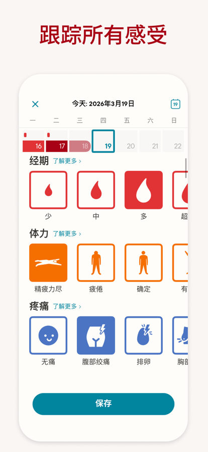 Clue 不单是一个经期跟踪程式,更是一个准确的月经行事历、排卵应用和每周怀孕情况跟踪程式,让你掌控你的生殖健康。 轻松跟踪生理周期,对你的经期、受孕日、怀孕以及与此有关的所有事情进行个性化、精确的预测。 Clue 照顾你的月经周期和生殖健康的每个阶段,并使你轻松地与独特的生理周期活在同一步伐。 正在尝试受孕? 通过基于经过临床测试的演算法,每天进行生育力预测,找出你理想的尝试或在家授精的日子,更快的怀孕。 你的隐私对 Clue 很重要。Clue 不会出售,也不会泄露你的个人健康数据。 体验每个有月经周期的人都在谈论的 app。 • 获 Healthline 选为 2023 年最佳生育应用 • 获 Apple 选为 App of the Day(今日应用) 使用Clue可以: +了解您的下一次经期开始时间 + 通过特定的孕期跟踪分类、婴儿成长阶段的视觉比对、怀孕日历和怀孕健康指导等功能,每周跟踪你的怀孕情况。 + 找出您生理周期的独特模式。 + 知道哪一天您更可能或更不可能怀孕。 + 跟踪性生活、 痛感、 情绪、分泌物、 避孕药、和基础体温。 经期和月经周期跟踪 轻松跟踪你的经期、分泌物、节育方法等,更可记录 60 多个其他项目,如皮肤、情绪、疼痛和能量水平,全面了解你的身体。 使用 Clue 经期跟踪,只需点击你正在经历的项目,行业领先的人工智能演算法就会计算出其余部分,让你发现生理周期对你的头发、运动和性生活等的影响。 使用 Clue,可靠的节育提醒和经期预测让你无后顾之忧。当你跟踪到与你典型模式不同的数据时,甚至会得到 Clue 的提醒。 生育和排卵计算器 免除体温检查或小便测试的麻烦,更快的怀孕。 使用 Clue 受孕,你所需的一切都在指尖上并拥有生育专家的支持,提高你的怀孕机会。 只需跟踪你的经期开始日期,应用就会每天替你预测你的好日子、理想日子和最佳日子,让你进行性行为或在家授精。 怀孕和产后跟踪 每周跟踪你的怀孕情况,备有专门为怀孕而设的类别,如嗅觉、味觉、性高潮、维生素摄入量和怀孕时的容光焕发。 追踪胎儿的发育情况,包括典型的长度和体重,并获得关于你体内发生的重要变化的信息。 浏览独家文章,并通过完全由注册助产士和妇产科医生撰写的内容来解答你的问题,引领你度过孕期的每周,并顺利进入产后。 订阅 Clue Plus 让你善用 Clue 的所有功能。 试用 Clue Plus,体验照顾你的生理周期每个阶段的全方位生殖健康应用,可以查阅基于科学的文章、未来六个月的生理周期预测,以及对你独特生理周期模式的深入分析等。 你的 Clue Plus 订阅包括 Clue 怀孕和 Clue 受孕,因此你可以轻松地根据身体的变化和需求来调整应用。 一些法律细则: 在你选择适合的 Clue 订阅并确认购买后,与你的 iTunes 账号相关的信用卡将被扣除金额。 一旦购买,你的订阅将自动更新,除非在当前期限结束前至少 24 小时关闭自动更新。 如果你目前正在免费试用,当你购买订阅时,任何未使用的时间将失效。 如果你想续订,你的账号将在当前期限结束前 24 小时被收取与你初次订阅时相同的金额。 你可以随时管理或更改你的订阅,包括关闭自动续订,在购买后打开你设备上的 "账号设置"。 注意:Clue 不应 被用作节育工具。该应用程序不能替代专业的医疗建议、诊断或治疗。 您的医疗保健提供者可以根据您的具体需求和情况为您提供建议。 在 helloclue.com 获取与经期、性行为和月经健康等相关问题的答案 服務條款 - https://helloclue.com/terms 隐私政策 - https://helloclue.com/privacy