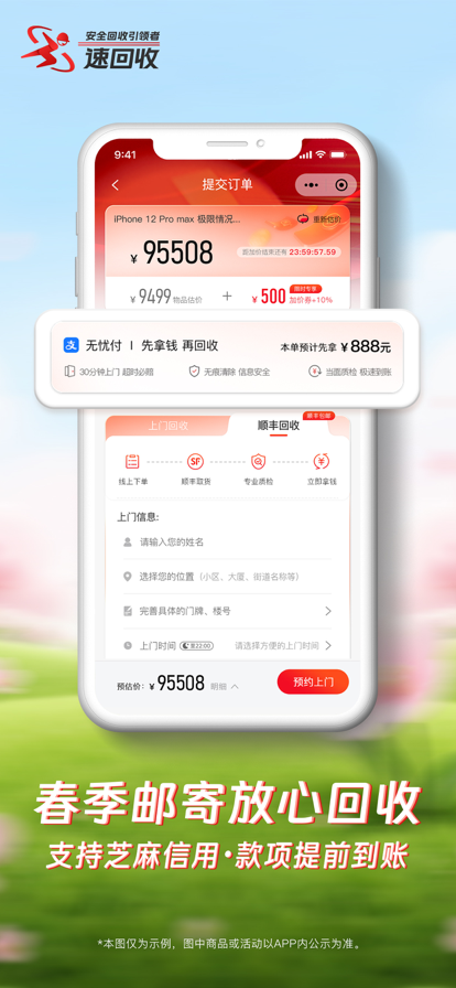 速回收|十年深耕回收领域,靠谱老品牌更放心! 与支付宝、苏宁等一线平台深度战略合作,覆盖手机数码、奢侈品全品类专业回收。已服务1000万+用户,安全回收超1000万台设备,累计兑付100亿+回收打款,新老用户专享高价回收+全程贴心服务,闲置变现省心又靠谱! ===产品特色=== 【30分钟极速上门 超时就赔款】 全国百城覆盖,预约后30分钟内专业回收员上门(支持早8:00-晚20:00预约) 若上门超时,立即赔付现金红包(无需额外申请,自动到账) 面对面现场质检,设备描述一致则绝不压价,确认后秒到账 【10周年庆 全场限时直加10%】 覆盖手机数码、奢侈品、金银珠宝、名酒、潮鞋卡券等全品类闲置! 数码类:手机、笔记本、平板、摄影设备等 奢侈品类:手表、包包等高端奢品 其他高价值品类:金银珠宝、品牌名酒、潮鞋、各类卡券老品牌 无套路加价,闲置变现趁现在! 【服务保障 全程无忧】 估价精准:免费一键估价,几秒出结果,描述一致不压价 极速打款:上门回收秒到账,质检透明,报价无套路 隐私清除:数据粉碎+恢复出厂,全程录像可查,不留任何痕迹 顺丰包邮:全国顺丰上门取件,运费全免,收货当天处理 ===你为什么需要速回收?=== 逢年过节的闲置礼品,放着吃灰又可惜? 搬家收拾的旧数码,占空间还偷偷贬值? 冲动买的手机/奢侈品,不喜欢了想变现却怕被坑? 速回收十周年老品牌,30分钟上门还超时赔,安心卖闲置,快速回血无顾虑! ===我们在这里等你=== 有任何疑问或建议,欢迎联系官方渠道反馈! 官方网址:https://www.suhuishou.com 官方微信:速回收CC 官方微博:@速回收 官方邮箱:suhuishou216@163.com 客服电话:0755-33528888