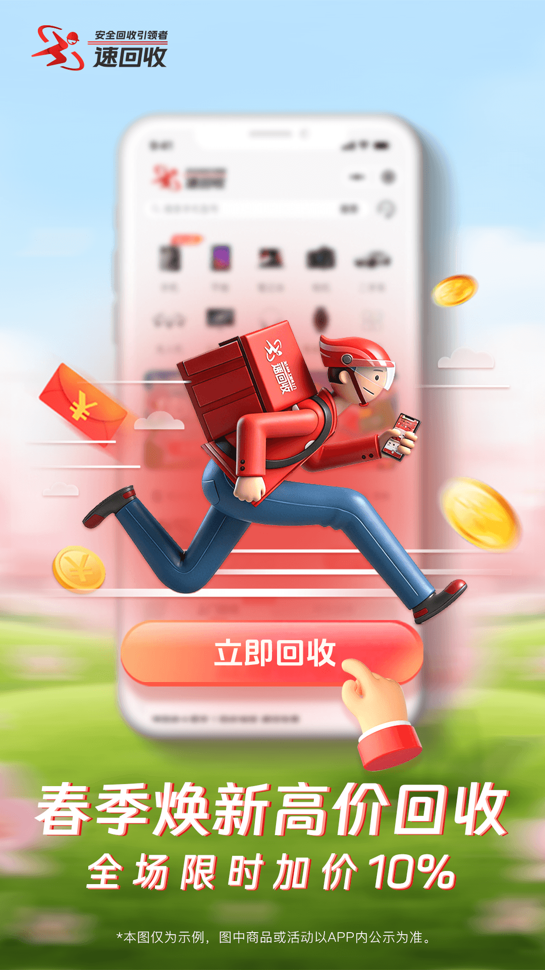 速回收|十年深耕回收领域,靠谱老品牌更放心! 与支付宝、苏宁等一线平台深度战略合作,覆盖手机数码、奢侈品全品类专业回收。已服务1000万+用户,安全回收超1000万台设备,累计兑付100亿+回收打款,新老用户专享高价回收+全程贴心服务,闲置变现省心又靠谱! ===产品特色=== 【30分钟极速上门 超时就赔款】 全国百城覆盖,预约后30分钟内专业回收员上门(支持早8:00-晚20:00预约) 若上门超时,立即赔付现金红包(无需额外申请,自动到账) 面对面现场质检,设备描述一致则绝不压价,确认后秒到账 【10周年庆 全场限时直加 10%】 覆盖手机数码、奢侈品、金银珠宝、名酒、潮鞋卡券等全品类闲置! 数码类:手机、笔记本、平板、摄影设备等 奢侈品类:手表、包包等高端奢品 其他高价值品类:金银珠宝、品牌名酒、潮鞋、各类卡券老品牌 无套路加价,闲置变现趁现在! 【服务保障 全程无忧】 估价精准:免费一键估价,几秒出结果,描述一致不压价 极速打款:上门回收秒到账,质检透明,报价无套路 隐私清除:数据粉碎+恢复出厂,全程录像可查,不留任何痕迹 顺丰包邮:全国顺丰上门取件,运费/保价全免,