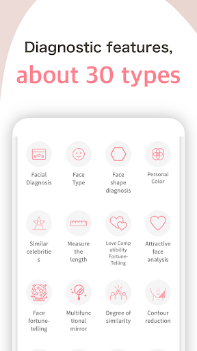 智能人脸测试应用,包含颜值测试、皮肤测试等多个人脸分析功能,在贴合现实情况下,给出人脸测试分析结果<br>1.颜值测试功能,基于人工智能及大数据分析你的面容,依据眼睛、嘴巴、鼻子、脸型等维度计算颜值。<br>2.皮肤测试功能,基于人工智能及大数据评估你的皮肤,依据色斑、青春痘、黑眼圈、皮肤健康等维度来分析皮肤状态。<br>3.颜值大比拼功能,基于人工智能及大数据分析你和朋友们的面容,评估计算颜值,得出颜值的排名。<br>4.脸型测试功能,基于人工智能及大数据分析你的脸型,让你知道你的脸型有哪些特点。<br>5.提供人脸测试结果分享功能,你可以将你测试的结果通过图片的形式分享给大家。<br>6.更多关于人脸测试与分析正在准备上线,敬请期待。