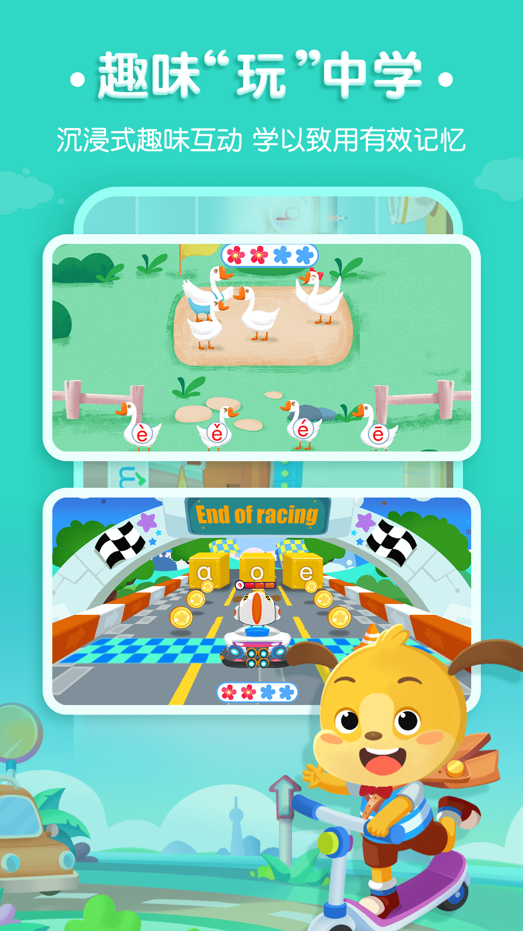 【小伴龙拼音】根据2-8岁儿童认知发展规律精心设计的拼音启蒙工具。在趣味故事情境和好玩的游戏互动中,帮助孩子快乐学拼音,克服拼音启蒙过程中发音难、拼读难、记音形难的问题。 【小伴龙拼音】适合哪些孩子 幼儿园毕业生; 拼音基础薄弱,对拼音知识点掌握较差的孩子。 【产品特色】 1.丰富的互动学习模式 -内容涵盖63个拼音,通过精心设计的拼音星人,将拼音特点融入到每个拼音伙伴形象当中,形象又好记,认识了伙伴就记住了拼音。 -21节3D拼音互动动画内容,让孩子扮演故事主角,沉浸在拼音的语境学习环境当中,快乐学拼音。 -300+拼音学习互动环节,有趣的拼音认、读、写复习关卡,强化效果。 2.科学设计的内容结构 用孩子喜欢的方式,通过趣味互动的故事元素,陪伴孩子一起玩、读、写、测、学,科学闭环的丰富互动体验,让孩子喜欢并理解拼音。 3.有趣的语音识别纠音 形式多样的语音互动,将拼音融入到语境当中,让孩子主动开口说拼音。采用语音识别功能,让孩子学会拼音的正确发音。智能AI语音评测,纠正孩子错误发音。 4.寓教于乐的场景互动 互动故事代替单调知识讲解。精心设计的200+互动动画内容,涵盖日常生活、食物、交通、医疗、森林、等主题场景,培养孩子兴趣和自主学习能力。 欢迎联系 官网:https://www.youban.com 微信公众号:小伴龙