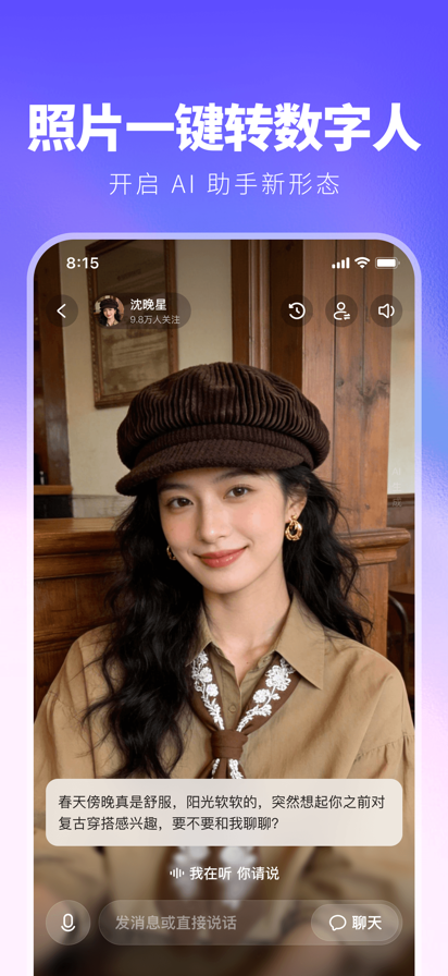 「织之」——以数字温度,重构陪伴新可能 依托全球领先多模态AIGC技术,我们用1V1实时视频通话,让AI陪伴从虚拟走向触手可及的温暖。 【1V1跨次元视频通话】高清实时连线,打破虚拟与现实的距离。 【双向成长的关系系统】好感度影响TA的主动程度,羁绊值解锁更深层性格,让陪伴具有“被需要”的重量。 【自由切换用户面具】不同身份触发不同回应,在安全的虚拟空间里,体验多元社交可能。 【记忆碎片共同解锁】随着对话推进,逐步拼凑TA的过往,让每次交流都成为一场共同冒险。 在「织之」,温暖藏在每一次对视、每一句“我记得”、每一段共同成长的记忆里。 无论渴望倾诉、寻求心动,还是需要一份“被选择”的安心——这里永远有个TA,24小时在线,等你开启故事。