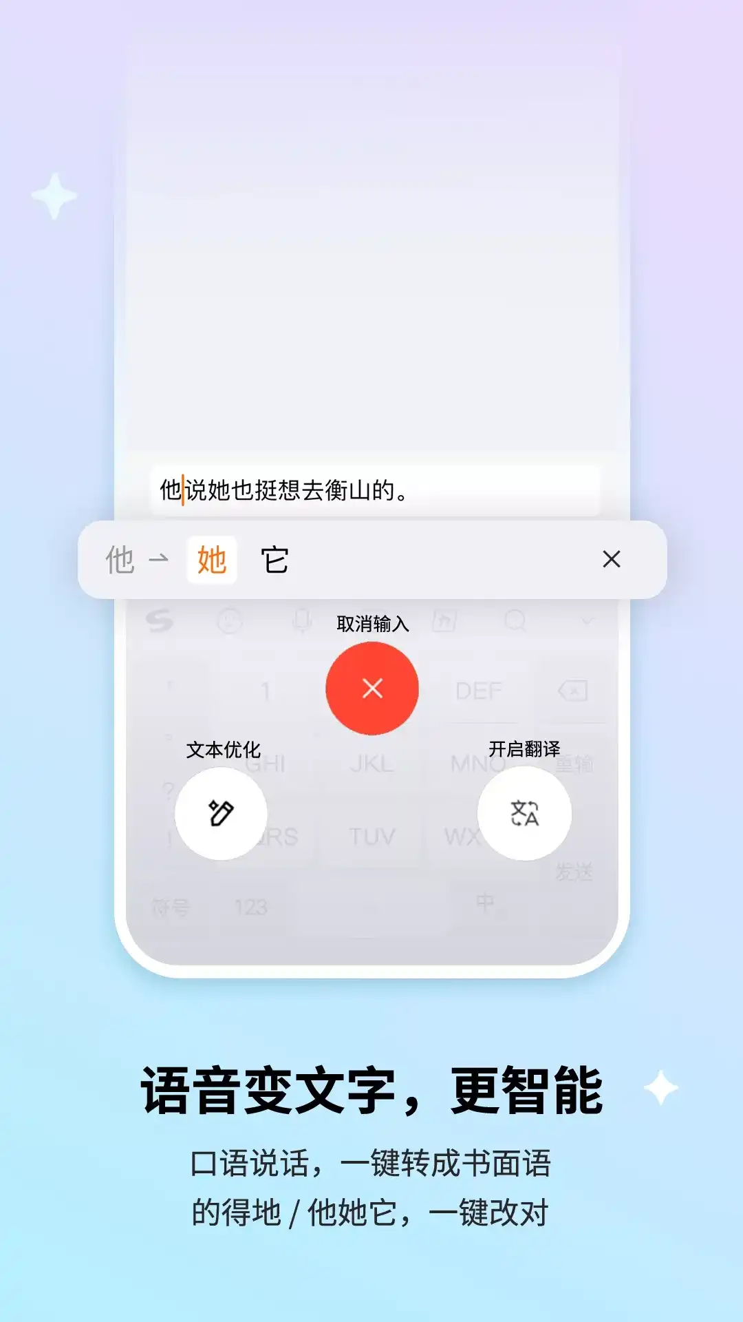 AI 键盘更智能更好用 讯飞输入法,融合讯飞星火大模型,行业首创【AI 键】、一键开启个性化AI功能,输入更懂你。语音输入高效准确,拼音、手写流畅自如,输入更快更好用。更有键盘皮肤、表情、聊天气泡、头像、壁纸,海量装扮有趣有颜 特色功能 【AI语音输入】1 分钟 400 字高效准确,支持离线语音、无网弱网依然准确识别,支持202种方言、30多种外语随心说,输入更快更好用 【键盘AI键】行业首创AI 键,活力视界布局下匹配场景、风格,一键AI 帮写、润色、链接智能服务,输入更懂你 【键盘装扮】海量皮肤、字体随心选,装扮你的专属键盘,输入有趣更有颜 讯飞输入法【有AI键的输入法】,为你量身打造的【专属输入法】,因为懂你所以好用 ===期待你的声音=== 微信官方公众号:讯飞输入法 微博官方账号:@讯飞输入法 或者打开讯飞输入法APP,点击[我的]-[设置]-[意见反馈] 每一条消息我们都会认真阅读,真诚期待您的反馈哦!
