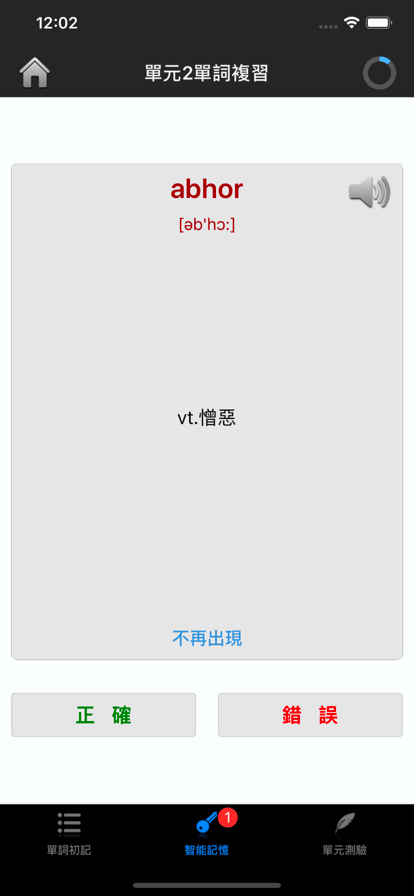***超凡背单词 艾宾浩斯记忆原理*** 智能化单元管理是超凡背单词的最大特点,通过对单元任务的有条理的执行,您可以在不知不觉中获得最佳的记忆效果。您无需知道自己今天背了多少单词,也不必为了完成任务赶工,只要养成习惯按部就班,确保每一次任务都能完美完成,胜利很快就会到来! *定期复习:要用最小的代价达到最佳效果,定期回头复习是必须的。艾宾浩斯记忆曲线根据人的记忆周期确定了8个复习点,用于强化记忆效果。本软件的核心便是根据此原则,自动生成复习任务,您无需自己设置复习计划,只要每天打开APP根据提示进行操作即可。务必牢记:有效的复习比填鸭式的背新单词更重要! *强化记忆:每一个单词都会根据您的认知程度进行不同次数不同间隔的重复出现,直到您确认记住为止。此过程科学的帮助您完成短周期的复习任务,强化记忆效果。 *测试检验:每个单元的单词学习完毕后,系统会自动生成测试题目,您必须在测试中达到至少90%的准确率才能通过测试,否则下一个单元不会开放。此过程确保您学习的有效性,保证每一个记忆点都能最大化巩固。 *贴心功能:对于自己感觉难懂难记的单词,可收藏后随时查看;每次单元测试中答错的题目,系统会自动收录到错题集里;如果有您非常熟悉无需学习的单词,记忆页面里也可以通过手指滑动单词列表的方式随时屏蔽或在白名单页面随时解除屏蔽。 *历史单元查看:已完成的单元可通过左侧菜单随时查看,在时间充裕的情况下,建议通过此功能反复巩固复习,这样记忆效果要比一味进行新单元,学习新的单词更有效。
