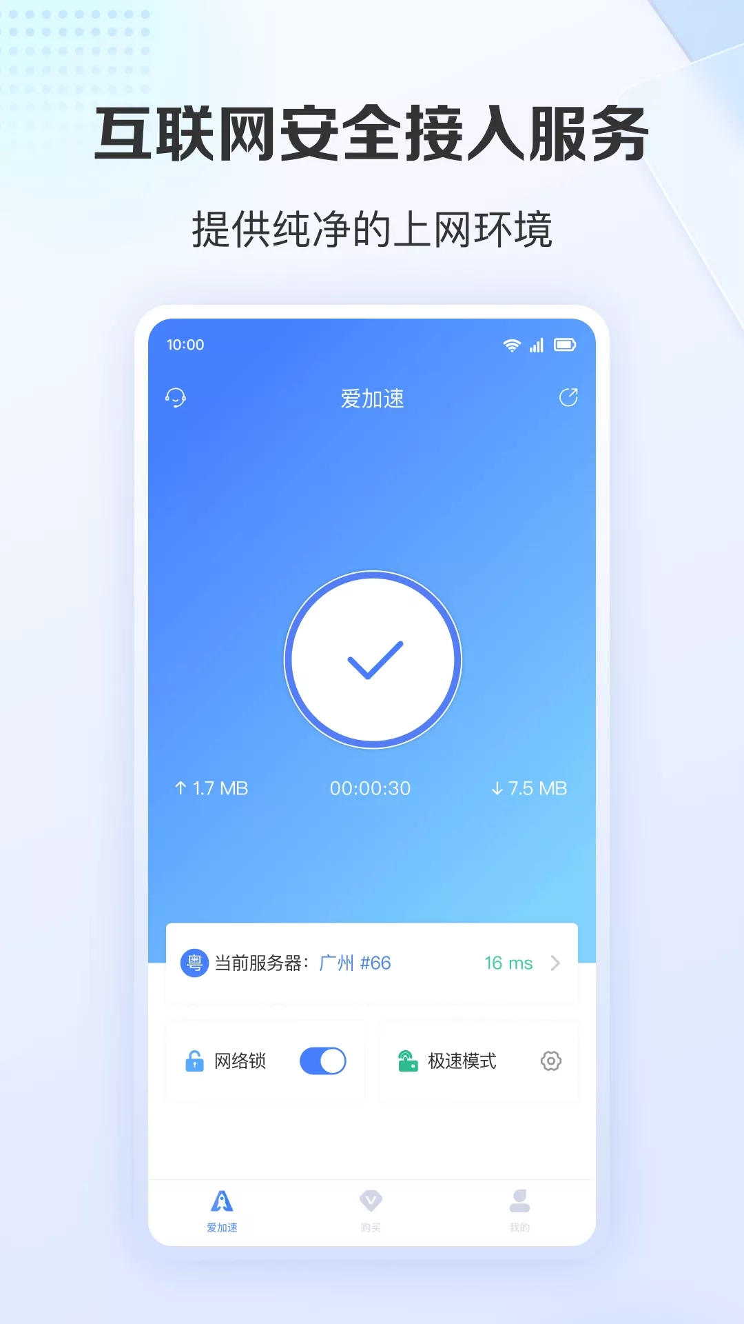 已覆盖国内 206 个城市,共 2600+ 服务器。 请勿相信网络刷单、理财、约会等诈骗行为。 禁止用于任何攻击、诽谤、编造虚假事实等违法行为。 爱加速坚持在合法合规的前提下重视用户网络安全,坚决维护用户的合法权益,全力筑建清朗互联网。 -----爱加速•静态网络接入----- √ 覆盖全国 200+ 城市的静态IP代理 √ 免费试用,无限流量,超值体验 √ 超大带宽,单设备可用带宽为 10-30Mbps -----守护个人设备的网络安全----- 爱加速是一款静态网络接入软件(静态IP代理),仅提供境内服务器,支持境内网络加速,不能访问境外屏蔽网站,谢绝用于任何非法用途。 静态IP服务器支持稳定连接,拥有 2600+ 不同地区的境内服务器(静态IP地址)为您提供网络安全接入服务。 保护手机网络,屏蔽恶意广告,网络安全与速度尽在掌握。 -----产品特点----- 【高速】爱加速在全国 200+ 城市拥有 2600+ 服务器,单设备可用带宽为 10-30Mbps 【免费】免费提供静态网络(静态IP代理)安全接入服务,助力用户创造价值,免费试用,无限流量。自建纯净机房,独享千兆带宽,网络安全与速度尽在掌握!改变与保护设备网络,降低网络游戏延迟,加速网页浏览,视频聊天不再卡顿。 【便捷】无需配置,一键连接,因为专业,所以简单!界面简洁,清晰明了,一键切换稳定不断线的静态网络地址(静态IP地址),2400+ 代理IP服务器轻松选择。 【安全】爱加速采用 AES-256 密码学加密,保护您的网络数据传输,有效保护 ARP 攻击、DNS 篡改等网络攻击,隔离风险WiFi,保护手机网络,屏蔽恶意广告。没有人可以监控或窃取您的网络数据,预防个人信息泄露。 ----联系我们---- 爱加速的客服提供专业的问题咨询和解答,全年无休。
