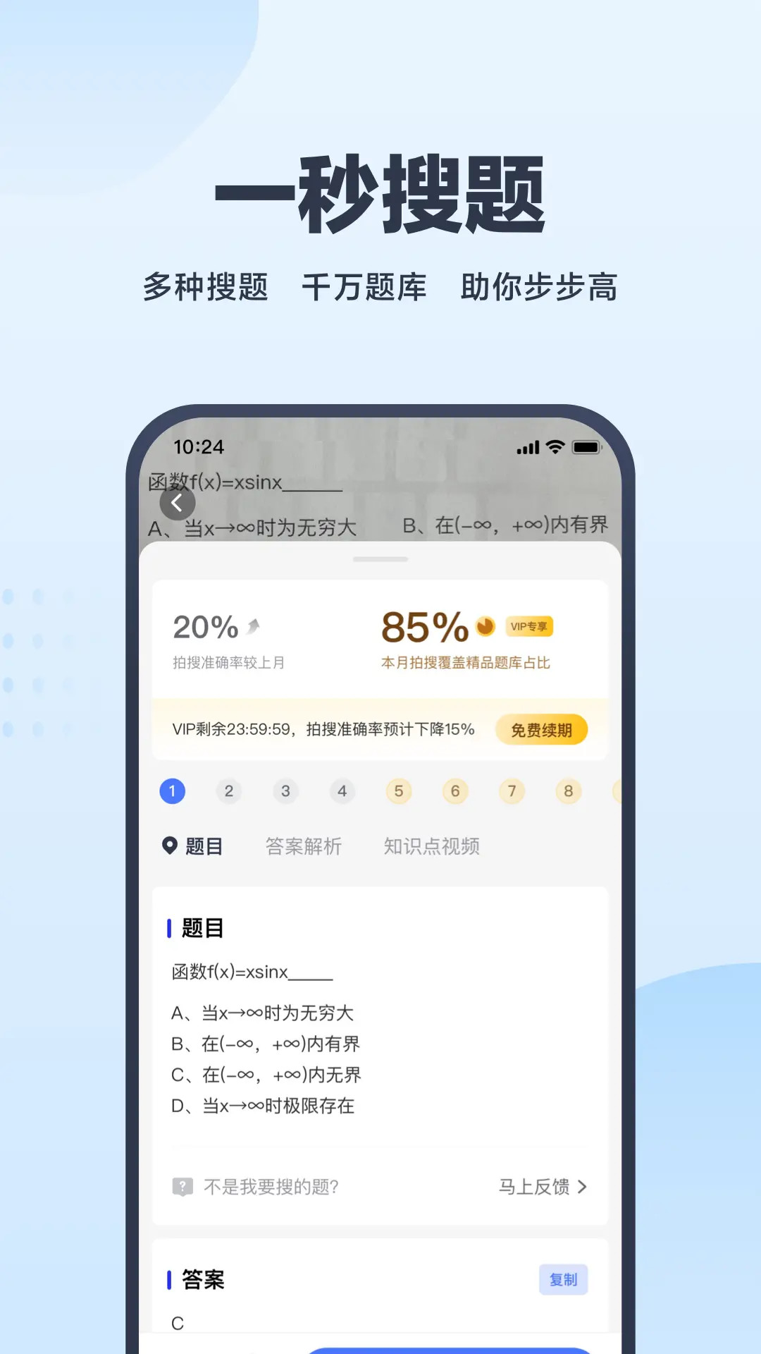 考途-大学教材答案&网课答案全收录 考途APP是一款专供大学生使用的搜题和做题神器! 专注于大学生校内学习和考研/公考等能力提升。 高途教育科技集团旗下大学生学习辅助工具。 「万千题库」 收录上万本教材教辅书籍,海量千万题库,并配有详细优质解析。 包含高数,物理,计算机,医学,外语,工程,建筑,理学,工学, 文学,经济学,管理学,法政,教育学,历史,哲学,艺术,军事,医学,农林牧渔类等作业答案! 课后作业不用愁! 「网课全收录」 收录数十家大学网课的练习内容,网课作业,网课考试,全涵盖 中国大学MOOC、智慧树(知到)、超星尔雅(学习通)、优学院、学堂在线等,全收录 再也不用担心网课啦! 「多模式搜题」 1、拍照搜题:相机对准题目一拍,秒出答案,解题速度我最快 2、文字搜题:文本搜题,支持题目一键复制粘贴,让题目搜索更便捷 3、扫码搜书:一键扫描教辅书条形码,即出教材书籍,遇到难题无压力 4、课程收藏:一键将所需教材/网课加入书单,查找方便,只看我学的内容! 「升学考编」 考研、公考、四六级、教师资格证全纳入 1、考点精练:专项练习突破短板,专门针对复习难关,分模块练习 2、真题实战:收录考研,公考(国考/省考),教师资格证等历年真题,在线模考,并配有详细解析 3、考点记忆:根据考试大纲,收录多学科的知识点,背诵记忆更方便,碎片化时间统统利用 4、真题下载:收录考研,公考(国考/省考),大学四六级等历年真题,可在线学习,也可下载pdf自助打印学习 「温馨提示」 根据相关政策法规,本应用不提供中小学生的拍照搜题功能 高途教育科技集团有限公司 官方网站:www.tutusouti.com 官方邮箱:kefu-soupai@baijia.com 客服电话:4000-910-188(周一至周五 10:00-21:00)
