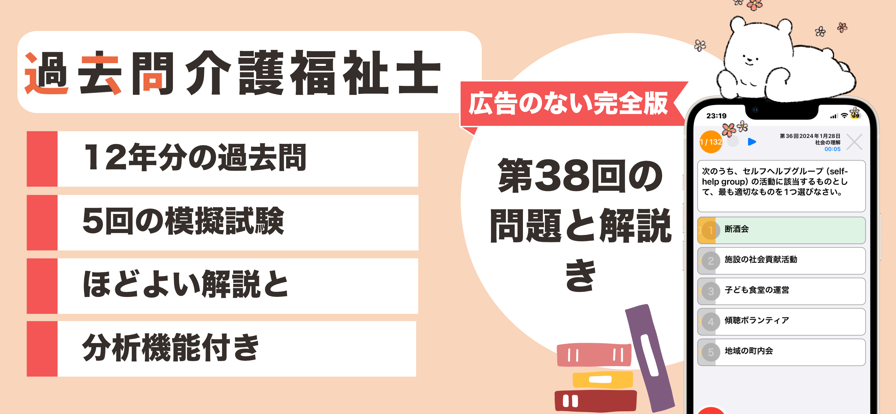最新の問題と解説を掲載!!介護福祉士の過去問をアプリ化。過去問検索やマイリスト機能。ランダム10問テストなど、国家試験を受験した時に、あったら良かったと思う機能を搭載しています。 広告が気になる方は、有料版を用意していますのでそちらをご利用ください。成績やリストについては、無料版からの引き継ぎが可能となっています。 公式サイト https://kakomonblog.com 利用規約 https://kakomonblog.com/kiyaku