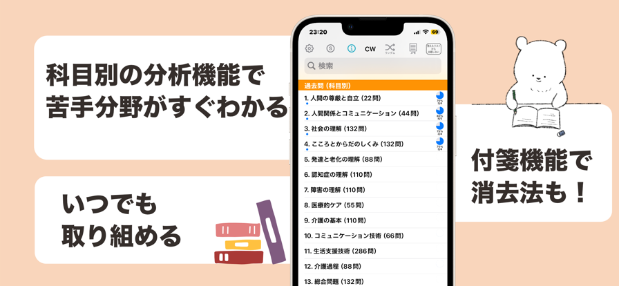 最新の問題と解説を掲載!!介護福祉士の過去問をアプリ化。過去問検索やマイリスト機能。ランダム10問テストなど、国家試験を受験した時に、あったら良かったと思う機能を搭載しています。 広告がなく、快適に学習することができます。成績やリストについては、無料版からの引き継ぎが可能となっています。 公式サイト https://kakomonblog.com 利用規約 https://kakomonblog.com/kiyaku