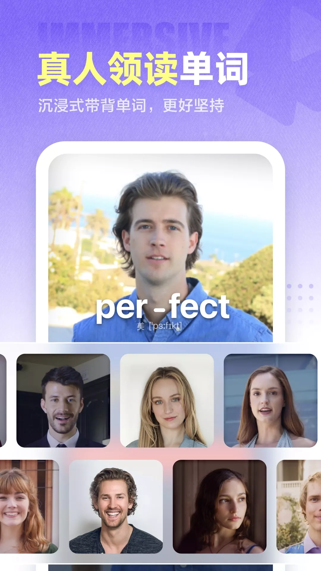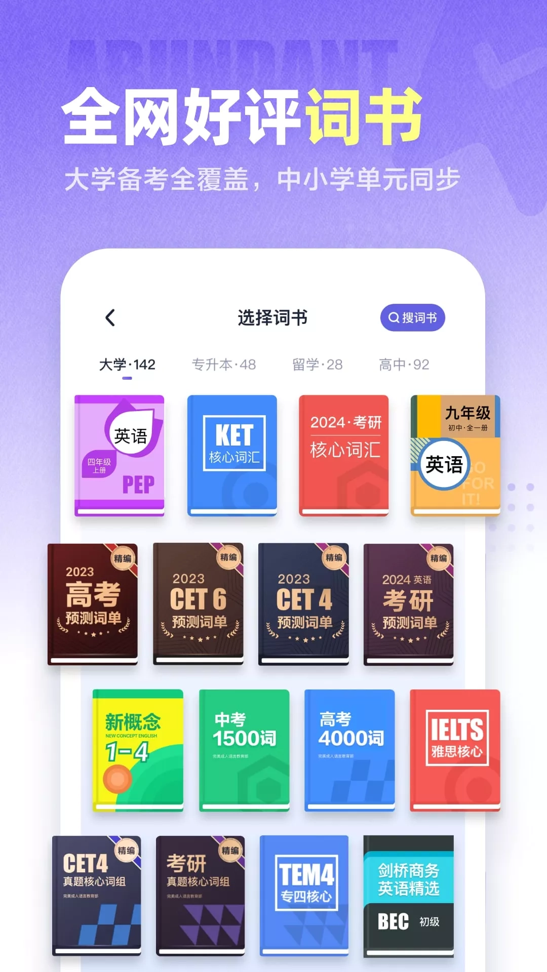 ●国家新闻出版署2023年数字出版精品遴选计划应用 ●获得多个安卓英语市场专题栏目推荐 ●安卓应用市场必备英语学习应用,全网好评超50W+ 万词王(曾用名完美万词王),万词王真人实景背单词,学好英语,从读准每个单词发音开始。 【好莱坞演员拆音节领读单词】 -好莱坞演员3遍口型领读单词,反复大声朗读,读准每个单词发音 -剑桥语言专家严选例句,在场景中理解每个单词 【400+词书,你需要的这都有】 小学/初中/高中/四六级/考研/托福/雅思/专四/专八/医学/计算机/... 四六级/高考/中考等真题词组及各类话题词书 【单词释义全方位解读】 -正版柯林斯英汉双解词典,词源故事|视频|图片|谐音|搞笑|助记应有尽有 -3000+词根词缀带你串记上万单词,涵盖近十年四六级真题 【多种训练模式,记单词、练发音】 -看中选英/看英选中/听音辨义/拼写题/看英文释义选英/跟读单词/跟读句子 -真人纠音(单词、例句智能评分并帮你纠正发音)、随身听(支持单词拼读) 【精炼速记卡】 -简化词义卡:1秒速看精选核心知识,单词速记效果好 -考义突出:真题考过的释义标粗展示,按考频高低排序,重点记考