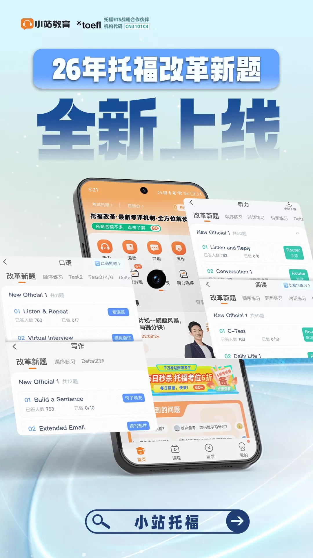 托福提分最重要的就是要掌握好的方法,「小站托福」APP 是专为托福考生设计的应用。汇集托福 TPO 1-54 模考、听/说/读/写各科专项练习,更有托福机经、微课堂、社群活动等功能,帮你掌握科学的备考方法,和托福早日分手。 精选备考指南 摘选靠谱备考资料帮你知晓方法了解考情政策,解锁更多提分技巧 机经在线练 小站托福机经是冲刺期的重要指南。高命中率口语、写作机经在线练,帮助考生划分复习重点赢得高分 课程干货十足 想要短时提分?每天公开课彻底轻松预约课程,涵盖各科的托福提分课助力拿高分 科目专项能力 听力精听:泛听全文、听音变速划词翻译。包含 TPO 1- 54、OG、Extra 等丰富听力资源,科学方法帮助考生提升托福听力成绩 「小站托福」APP 是你备考路上不可或缺的提分利器,陪你考出理想成绩实现留学梦想。 如果您对产品有任何建议和想法都可以在app内个人中心 反馈给我们