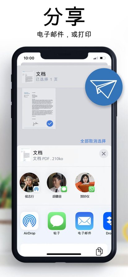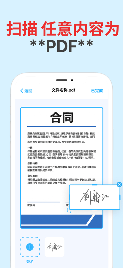 扫描全能王是一款集文件扫描、图片文字提取识别、PDF 内容编辑、PDF 分割合并、PDF 转 Word、电子签名等功能于一体的智能扫描软件。自动扫描,生成高清扫描件,支持JPEG、PDF 等多格式保存,还能将扫描件一键转换为 Word/ Excel/ PPT 等多种格式文档,通过手机、平板电脑、电脑等多设备同步查看。 -----功能亮点----- 【手机扫描仪】 手机拍纸质文档,智能去除杂乱背景,生成高清JPEG、PDF文件。默认自动扫描,对准纸质文档自动拍照,解放双手。 支持多种图像优化模式,可手动调节图像参数,将纸质文件快速转为清晰的扫描件。 【图片转文字利器】 智能 OCR 识别文字,即使搜索对象是图片,也能输入关键词轻松定位,高亮显示。 支持识别中、英、日、韩、葡、法等 41 种语言,还能一键复制、编辑图片上的文字,支持导出为 Word/Text/TXT 格式。 【个人文档管家】 支持一键导入 PDF、图片、表格等多类型电子文档;标签归类,多文件夹保存,一站式管理保存工作、学习、生活中各类资料。 手机、平板、电脑等多设备端,随时同步查看管理文档。 【PDF 编辑修改】 自由组合 PDF 文档,对多个文件进行页面删除、顺序调整、插入支持、页面合并等操作。 支持一键涂抹、添加批注,轻松编辑文档;高级账户还能设置智能水印铺满,一键生成电子签名等功能,确保文档安全。 【PDF格式转换】 PDF、Word、Excel、PPT 和图像文档之间格式互相转换,一键分享或下载到本地; 格式转换后可保持文本、图像等文档的原始布局,实现版面还原。 ----他们都在用扫描全能王做什么---- ● 职场人士:随时扫描手边合同、公司证件、开会 PPT 等,一键保存或分享PDF,随时查找翻阅,非常给力的办公软件 ● 学生:课堂扫描笔记、白板、PPT,复习找资料快速又方便;线上提交纸质材料、个人证件扫描件,高清又专业 ● 老师:扫描课堂白板内容、学生考卷错题整理,发给家长同步教学进度,老师用心家长安心 ● 医生:疑难病症资料随时扫描记录,同行交流会议 PPT 留存,整理留档,也方便给其他医院科室共同交流 ● 设计师:扫描保存设计手稿,一键提取线稿,随时捕捉灵感初现时的大胆想象 …… -----升级高级帐户,享更多强大功能----- ● 纸质文档一键转换 Word/Excel,轻松整理各类报表报告; ● 拍图识字,提取图片或扫描件中的文字,一键复制导出,快速整理资料; ● PDF 加密、添加电子签名、一键铺满水印等,分享协作高效安全; ● 支持身份证、护照、企业三证、户口本等近百种证件扫描,1:1 生成高清扫描件,可用于证照资料提交、电子开户等; ● 10G 超大云空间,文件夹分类标签管理,查找使用更方便。 一经确认购买订阅产品,iTunes会直接扣除相关订阅所需费用。 扫描全能王高级帐户可通过iTunes帐户信用卡直接付费订购。若当前订购周期(一个月/一年)结束前24小时内仍未取消续订,将会自动续订下个周期的高级帐户。 在当前订购周期内,无法取消当前周期的使用。您可以通过iTunes帐户的设置来管理或取消购买。 您的试用会立即结束,如果您付费购买了产品内的订阅。 关于服务条款: https://www.camscanner.com/app/service?language=zh-cn 关于隐私政策: https://www.camscanner.com/app/privacy?language=zh-cn ----使用建议---- 为确保你能获得清晰的扫描图,请在拍照时: ● 光线充足,尽量避免抖动 ● 尽量使图片占满拍摄屏幕 若你喜欢扫描全能王,或者有其他任何意见,请花一点时间给我们写评论,或发邮件至isupport@camscanner.com,这将帮助我们不断改进产品,给你更好的使用体验! ----关注我们 ---- 在新浪微博上关注我们 @扫描全能王 在微信上关注我们,搜索公众号:扫描全能王 在Twitter上关注我们 @CamScanner 在Facebook 上关注我们:CamScanner 在Google+上关注我们:CamScanner