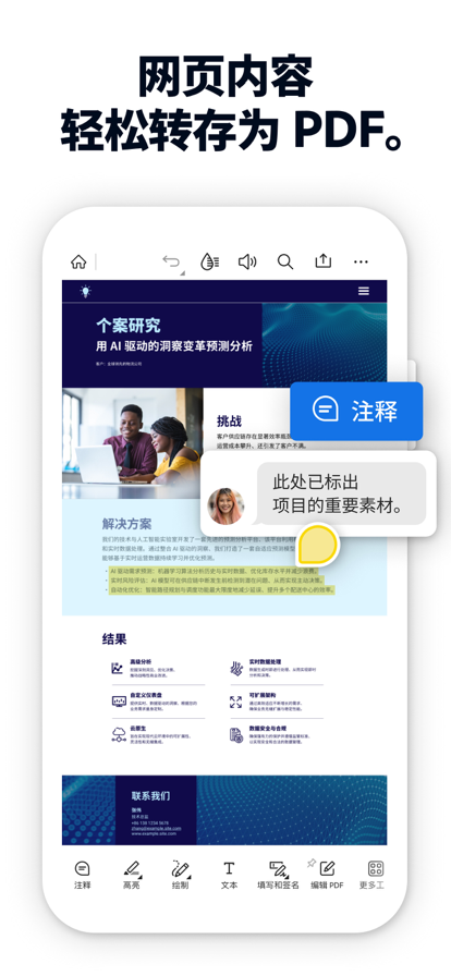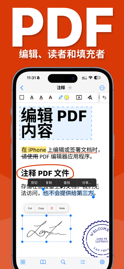 PDF 点睛已成为 Mac、iPhone、iPad 的必备 PDF App。 创建 PDF 点睛专业账号后,您可跨苹果设备,随时随地轻松完成 PDF 任务。PDF 点睛在全球拥有超过 3000 万用户。您所需的全部工具,皆可信手拈来。PDF 点睛也适用于 Apple Vision Pro(仅限 iPad)。 “PDF 点睛是我的 iPad 必备 App,其提供的桌面级 PDF 阅读体验无以伦比”。– MacStories “该 App 上手如此容易,真是惊为天人”。– MakeUseOf “管理、编辑、阅读 PDF 一步到位,名副其实最夯 iPad App”。– The Sweet Setup *** PDF 点睛提供以下免费功能 *** 无忧阅读 PDF – 打开 PDF 文件,不管是来自邮件、网络,还是来自其他支持苹果系统底层共享菜单的 App。 – 支持全文搜索、滚动、缩放。 – 使用文字专语音功能聆听文档内选定文本。 高亮和批注 PDF – 要标记电子书或翻译教材内重要内容,推荐您使用这些批注工具:高亮、下划线、删除线。 – 使用默认图章,如批准、未批注、机密。 – 使用精美贴纸表达自我。 云端工作 连接诸多网盘服务,如 Dropbox、iCloud、Box、OneDrive、谷歌云端硬盘,双向同步更加省心。 创建笔记 使用贴纸笔记或绘图工具为文本添加评论。 填写表单 – 填写包含文本域、复选框、单选按钮等交互域的 PDF 表单。 *** PDF 点睛专业版解锁高级功能 *** PDF 点睛专业版订阅服务向您提供额外强大的 PDF 功能,让您更加高效完成工作。 一个账号畅游 iPhone、iPad、Mac 一次订阅即可让您跨苹果设备高效办公。 编辑 PDF 源文本 编辑或更改当前文本。App 将自动检测源文本字体、大小、透明度,编辑自然得心应手。 PDF 转换格式 PDF 与其他格式互转:Word、Excel、TXT、JPG、PNG、PPT。 添加并编辑图片 PDF 内的图片,可添加、替换、重裁切大小,一气呵成。变更标识或图表。针对此类编辑操作,PDF 点睛可谓易如反掌。 签署文档 使用电子签名即可随时随地签署文档或协议。 收藏工具栏 使用自定义工具栏快速定位收藏工具。 添加链接 快速将部分文本链接到其他页面或网页。链接添加到图片。 涂黑敏感数据 永久擦除或隐藏 PDF 内敏感信息。 使用密码保护内容 – 使用密码保护限制他人打开 PDF 点睛。 – 使用密码保护 PDF,避免他人未经授权查看。 建筑工具 – 标尺和度量工具 – 多边形和多段线形状 – 红线工具 PDF 点睛提供专业版7天免费试用,您可立即下载并上手体验! 请阅读服务条款了解详情: https://pdfexpert.com/privacy https://pdfexpert.com/terms 您还有其他问题、建议、意见吗? 请致函 http://readdle.com/contact