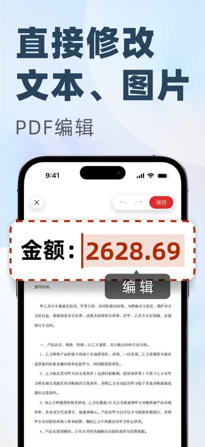 ----功能亮点----- 【PDF编辑器】 通过PDF编辑器,您可以对PDF文档执行各种操作,如格式转换、PDF内编辑文字、编辑图片、PDF内插入文字、插入图片,提取图片、合并、拆分、删除页面和调整顺序。使用PDF小剪刀功能,轻松处理大文件,支持涂抹、批注、添加水印等操作,提升工作效率,让文档处理更为高效和专业。 【PDF转换器】 PDF转换器是一款多格式互转的高效工具,支持将PDF文档一键转换为Word、Excel、PPT、图片、TXT等多种格式,保留原有排版结构不错乱。 同时也支持将多种文件格式快速转换为PDF,轻松满足办公、学习、合同处理等多场景需求。 无论是导出可编辑内容、提取表格,还是批量处理多个文件,PDF转换器都能为您提供流畅、精准的转换体验,提升文件交付效率。 【手机扫描仪】 使用手机拍照,即可将纸质文档转换为高清电子文件。无论是合同、发票还是其他纸质文档,都可以通过手机扫描仪生成PDF或图片格式,助您轻松完成文档数字化。 【超强格式转换】 再也不用担心处理超大文件!我们支持100Mb以上的大文件转换,确保文件排版稳定、无乱码,助您从容应对复杂文档处理任务。 【图片转PDF】 只需几步,您就可以将多张图片快速合并为一个PDF。无论是照片、扫描件还是截图,图片转PDF功能确保转换后文件清晰易读,特别适合保存和分享工作资料。 【个人文档管家】 无论是PDF、图片还是其他格式的文件,您都可以通过标签归类和多文件夹保存来高效管理,个人文档管家让您轻松管理和查找各种工作、学习和生活资料。 使用场景: 1. 日常办公场景 - 合同处理:快速编辑、修改或签署PDF格式的合同,使用大文件转换功能轻松处理超长合同,转换成Word等格式,便于后续编辑和归档。 - 发票整理:扫描纸质发票并生成电子档,支持批量操作,便于归档和快速分享给财务部门,提升工作效率。 - 文档归档和共享:企业可以通过扫描和批量管理文档,进行PDF转换、PDF合并归档整理,方便后续查看和企业内部协作。 2. 教育和学习场景 - 教材和讲义处理:教师和学生可以将教材、讲义扫描为PDF,使用OCR功能提取文字,方便做笔记和批注,轻松管理学习资料。 - 学习资料整理:将多张学习图片合并为一个PDF文件,便于统一管理;将PDF学习资料转为Word文档,方便后续修改和添加笔记,提高学习效率。 通过PDF文档管家,无论您是处理繁杂的工作任务还是学习资料,您都可以轻松高效地完成各种文档操作,提高工作和学习效率! ==== 相关协议 ==== 用户服务协议:https://mgfun.cloudtofun.com/download/agreement/MgPDF-servicepolicy.html 隐私政策地址:https://mgfun.cloudtofun.com/download/agreement/MgPDF-privacypolicy.html 会员服务协议:https://mgfun.cloudtofun.com/download/agreement/MgPDF-vip1.html 自动续费协议:https://mgfun.cloudtofun.com/download/agreement/MgPDF-automatic-vip.html