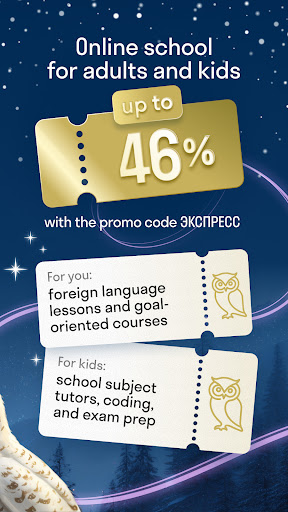 使用Skyeng应用程序,您可以随时随地自己或与老师一起学习英语,与以英语为母语的人练习讲英语,学习英语单词,练习听力,并了解文化。<br><br>自己研究<br>在您的个人词汇表中添加新词,然后进行练习。对于那些从一开始就学习英语的人,我们选择了从旅行到工作面试等热门话题。您还将从自己喜欢的电视节目,英式和美式语中找到表达方式,以及在国际考试中遇到的术语。制定自己的学习计划-每天2分钟和3个练习,并定期练习。<br><br>与老师进行一对一会议研究<br>在Skyeng在线学校,您可以与老师一对一学习。您所要做的就是将应用程序安装在智能手机或平板电脑上-所有任务已经存在。在入门课程中,您将参加语言水平测试,确定您的目标和兴趣,老师将为您创建一个课程计划-旅行,工作或考试。在该应用中,您还可以做作业,与老师聊天,安排课程或重新安排课程。您需要的只是一个良好的连接和空闲时间。<br><br>与原生说话者交谈<br>该应用程序还包括Skyeng Talks-15分钟的以母语为母语的课程。它们适合所有级别:初学者克服语言障碍,并继续提高英语口语水平。在1-2分钟内,该应用程序将为您找到从澳大利亚到南非的世界任何地方的老师,并且您将通过视频通话就您想要的任何话题进行聊天。<br><br>了解更多关于英语的信息<br>梳理语法规则,练习发音或从美国和英国学习最新消息-所有这些都可以在该应用程序的故事和文章中找到。关于文化,生活方式,幽默以及英语词汇,还有很多有用的信息。<br><br>练习听<br>我们当然也没有忘记聆听。在应用程序中,您可以观看英语短片,以更好地了解流利的母语人士。该应用程序包括电影,艺术,科学,时尚,单词集和其他主题。