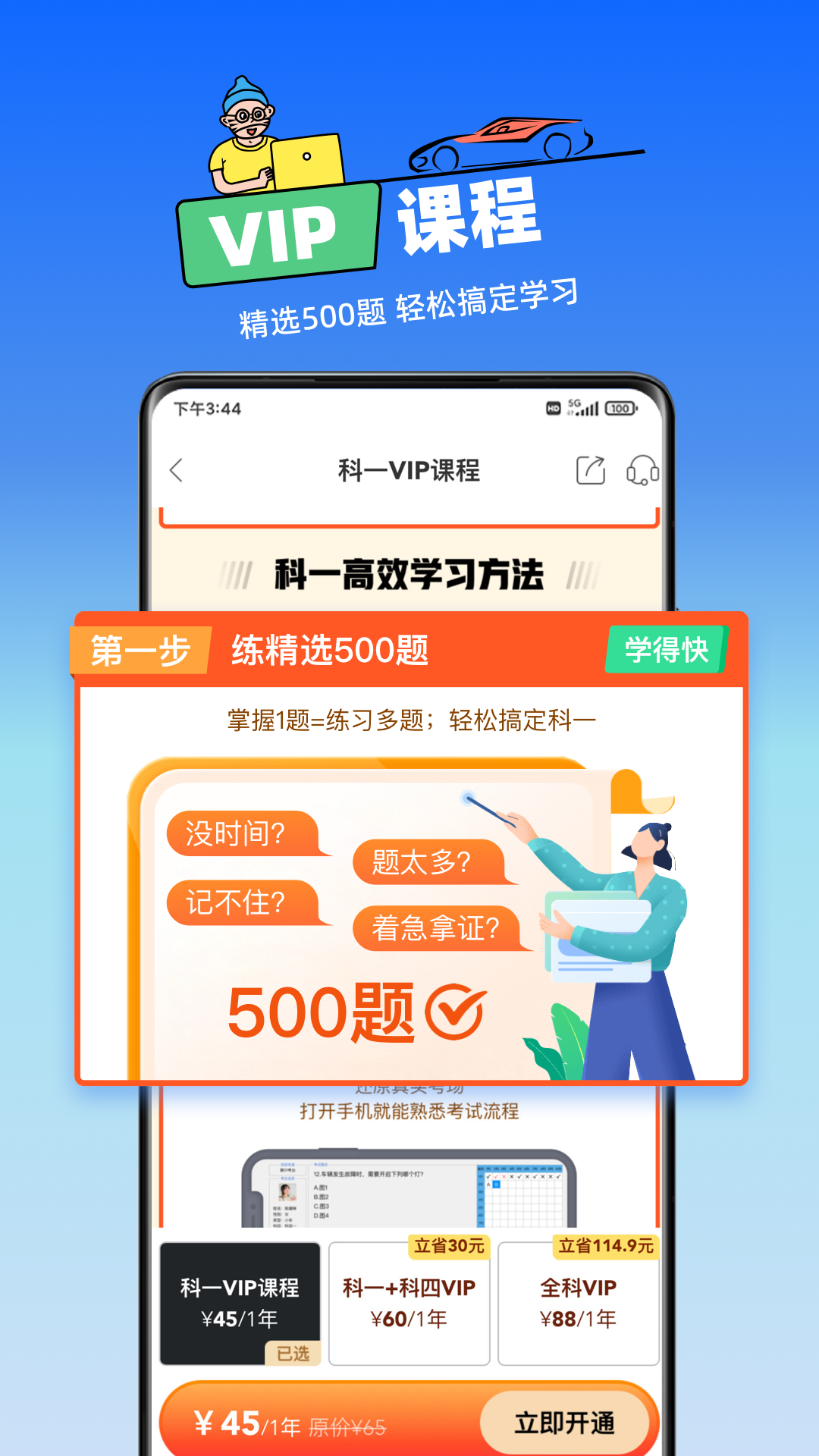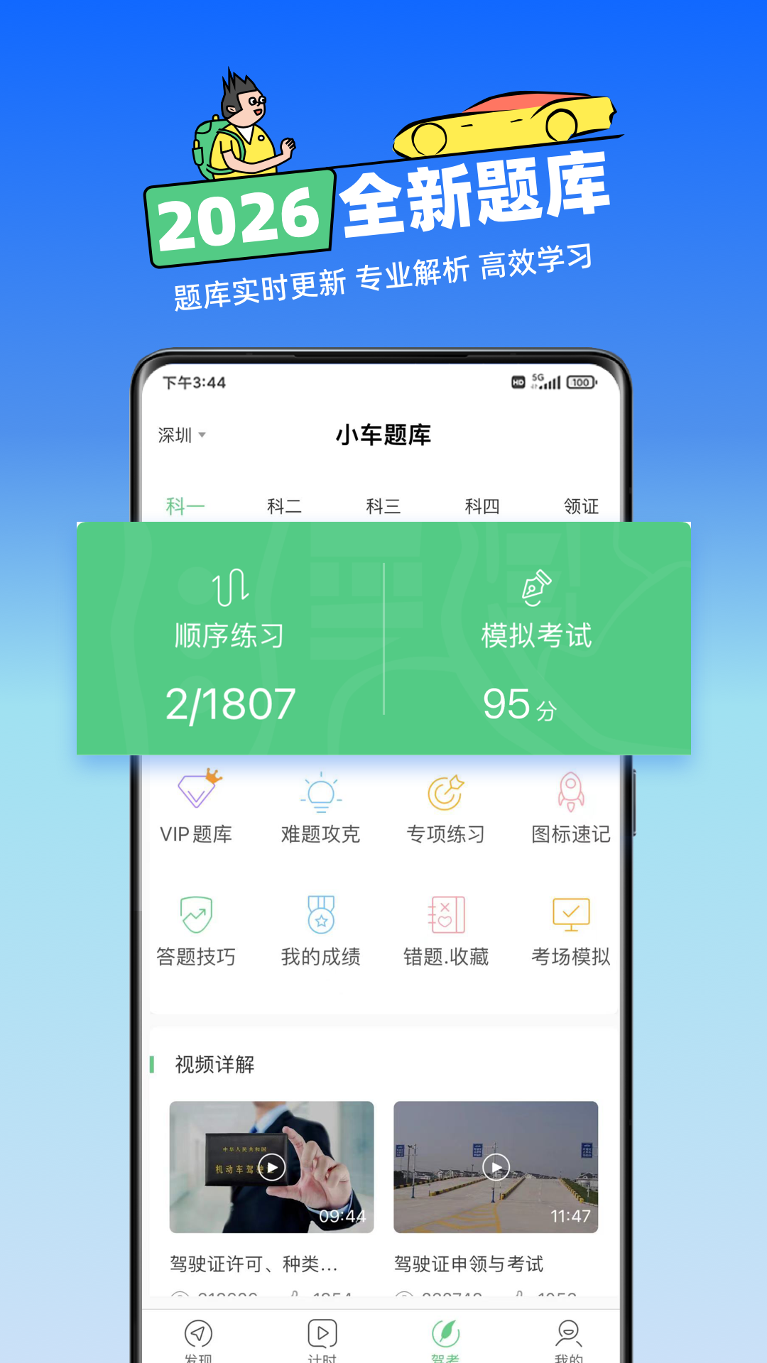 应用详情:懒人考驾照,是一款专业的驾考App。根据2023年《机动车驾驶学习及考试大纲》的教学要求,为您提供全部车型科目的驾考学习支撑,包括实时更新的全量免费题库、简单易懂的答题技巧、科一四1:1真实考场模拟、真人讲师教学视频等一站式驾考服务。 【精选答题技巧】 1. 技巧简单易懂:每道题都有技巧,不用死记硬背,只需记住关键字,快速答题做题; 2. 真人讲师带学:数十年经验驾考教学老师,直播解读2023考试知识点,细致讲解易错点、扣分点。 【2024驾考新规题库】 1. 题库足够新:根据新的驾考考试大纲,涵盖小车、客车、货车、摩托车题库,各地区题库实时更新; 2. 真实模拟考试:按照当前科目考试大纲要求,真实模拟考场规则,提前模拟考场环境,避免考试紧张。 3. 考试资料密卷:包括考试流程、速记技巧、交警手势图例等多维度精选资料,可下载打印纸质资料,拿在手里随时看随时学。 4. VIP精简题库:根据考点精选重点题目,攻克考点难点,高效备考省时省力