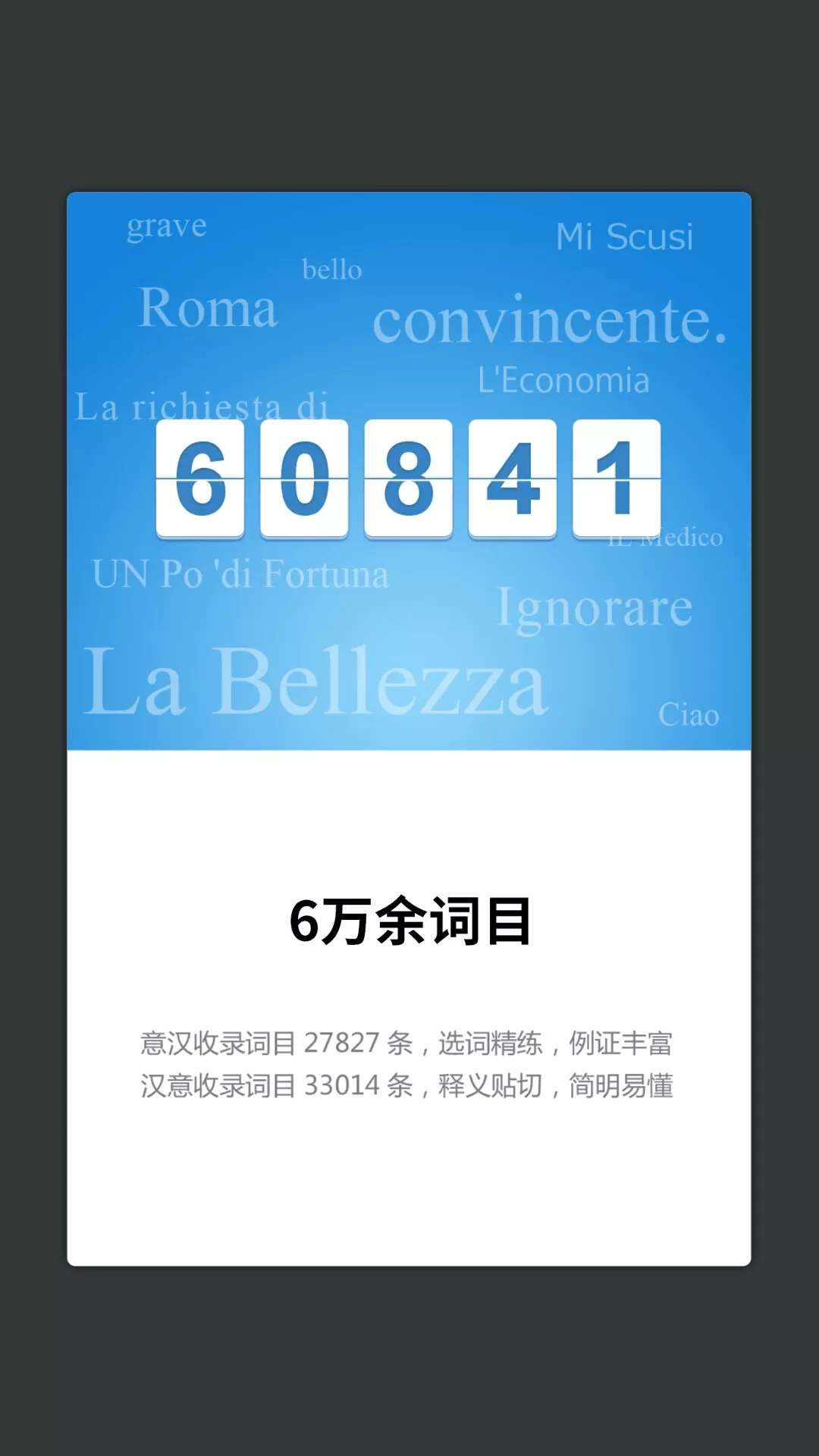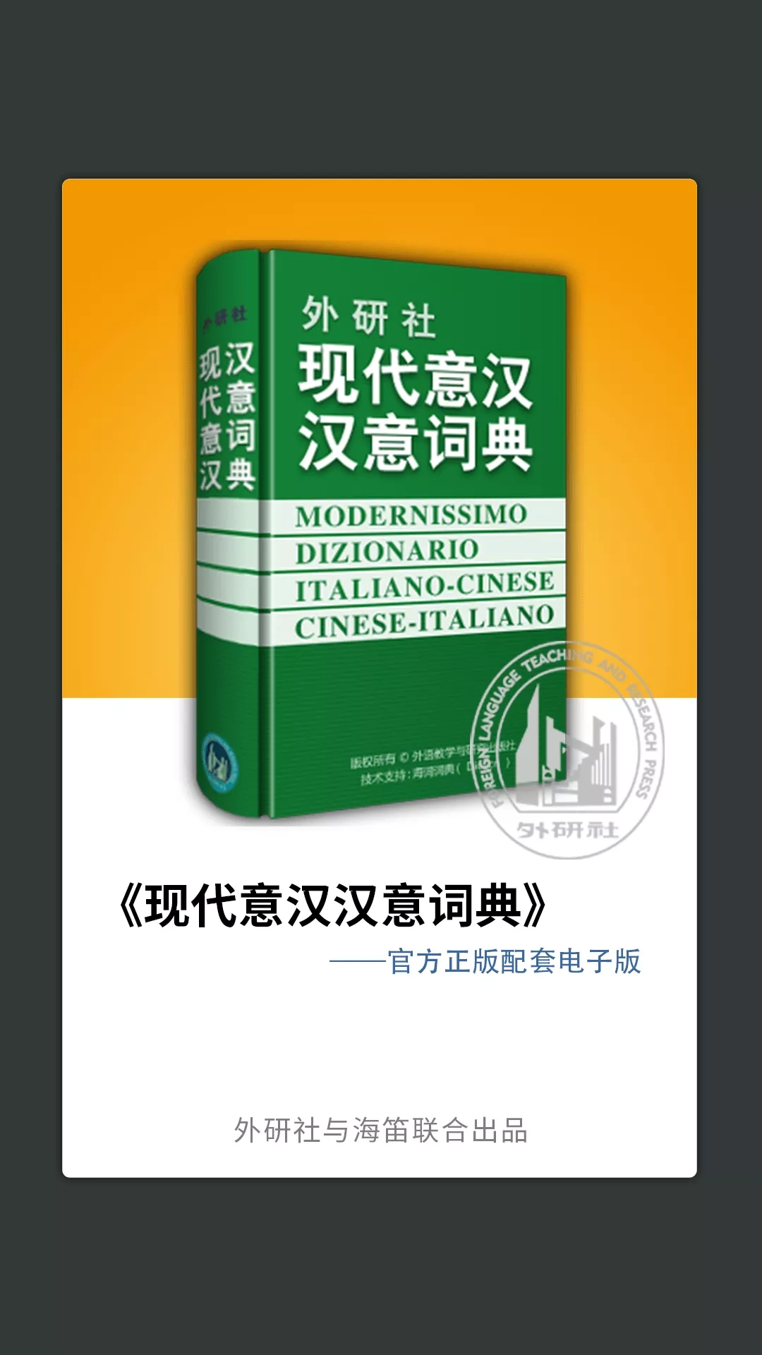外研社畅销词典,意大利语学习者好帮手。 与其他小语种学习软件相比,本应用具有两大特色: ①外研社携手海笛出品(著名品牌有品质保障); ②独有的以权威词典为基础(外研社《现代意汉汉意词典》) ★★★ 内容特色 ★★★ 【收词全面领域广泛】 词典共收意汉汉意词四万余条,除基本词汇外,还收录了近年来社会政治、经济、外贸、法律、科学、技术、文化生活等各方面的新词汇和术语。 【释义简洁例证地道】 词典提供全面详细的词汇义项、例证,力求将每个词条都解析透彻,在答疑解惑的同时,帮助用户有效提升词汇量。 【原汁原味地道发音】 单词、例句提供发音,帮助用户感受原汁原味的意大利语、学会地道口语。 ★★★ 功能特色 ★★★ 【智能查阅】 支持模糊查询,即使输入不完整单词,也可即时智能匹配。 多维度智能候选词,查词更快更便捷。 【反向查词】 忘记单词怎么办?不知如何用意大利语表达?只需输入中文意思也可以查到单词。 意汉、汉意双向查词服务,融入智能联想技术,一站式查遍意大利语词目、短语、例句。 【通知栏快捷查词】 学习时不方便打开词典查词?打开通知栏快捷查词功能,即可轻松查询生词。 【学习记录云端存储】 在本地和云端同步存储学习记录,再也不用担心学习进度丢失。 由海笛携手外研社官方正版发布,外研社意大利语App提供方便快捷的查词服务,帮助用户事半功倍地学好意大利语。 选择正版应用,学习更有保障!(版权所有,盗版必究)