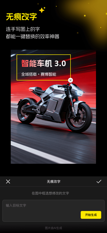超级制图是科大讯飞旗下,面向图片生成编辑场景的AI专业制图工具。描述即设计,打破传统单一模板替换制图的过程。自由度更大、个性化更足。致力于移动端AI化PS打造,让每一位创作者都能轻松搭建产品大师级场景。只需轻松几步,即可高效出图,不仅个性化、更具高阶感! 【核心功能】 1)AI文生图,灵感秒变画面 设计怕撞图?一句话描述即可生成创意海报、产品图、种草图……支持多种艺术风格。无论是品牌出图、内容创作还是设计提案,都能轻松搞定,让你的创意快速落地、不再撞图! 2)梗图、模板,设计轻松起步 图片要的急?流量梗图、热点海报、社交媒体配图等海量素材框架,兼具创意和设计,一分钟即可搞定吸睛图片,封面、焦点图、种草图……让你的图自带流量! 3)精细编辑,掌控每个细节 担心门槛高?智能编辑来帮忙,拖拽、圈选、点击……小白也能快速上手,0门槛实现无痕改字、精准抠图。深度打磨,创意细节更精美 4)创意空间,资产随时复用 图片怕丢失?创作和上传内容自动保存至云端空间,可分类管理,一目了然,随时调用。时刻守护你的数字创意资产。 【适用人群】 1)社媒内容创作者:快速产出小红书、抖音、公众号等平台图文作品与封面; 2)私域运营与营销人群:紧跟热点轻松制作活动海报、促销图文、朋友圈素材; 3)电商从业者:高效完成商品图示、活动 banner、详情页优化; 4)学生与职场人士:满足PPT制作、汇报配图、日常分享的视觉需求; 5)创意设计师:借助AI激发灵感,加速概念设计与方案呈现。 【选择超级制图的理由】 1)AI赋能,灵感不设限 依托科大讯飞先进AI技术,打破传统固定模板框架,更大自由度,描述即所得 2)流量模板,一键秒出图 流量梗图、热点海报、社媒配图等海量模板库,急图秒出,自带流量,让设计更简单 3)创意资产,持续积累 每一次创作都被安全存储、有序管理,守护个人或团队的数字创意财富。 4)极简流程,效率革命 打造移动端极致体验,从想法到成品,全链路无缝衔接。省去反复搜图、复杂软件学习的成本,真正实现“所想即所得”。 立即下载超级制图App,开启高效、自由、专业的内容创作新体验!
