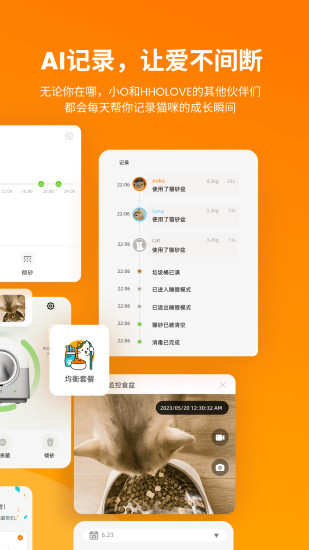 小O猫管家正式上线】 小O猫管家是一款集合“陪伴逗玩+AI生活记录+安心喂养”的智能宠物陪伴机器人。专为新手养猫群体、短期出行用户、需要远程陪伴猫咪的人士量身定制,告别猫咪独自在家的焦虑,随时随地陪伴宠物,守护它每个需要的时期。 【HHOLOVE介绍】 HHOLOVE是一款连接HHOLOVE智能硬件设备的App。我们致力于通过数字化解决方案,让宠物的喂养陪伴更加智能化,自动化,打造一个简单轻松,健康安心,温暖有爱的新宠物生活方式。在主人上班、加班、临时出差或短途出行的各类场景中,宠物可以免于从日常熟悉的环境中带出送到寄养中心,主人亦可免于麻烦身边的亲人或朋友代为加食喂水。 HHOLOVE相信,来自主人的爱是最好的爱,所以我们为主人提供了喂食、喂水和智能猫厕所在内的整套解决方案,帮助您在工作或旅行之余,仍然能通过我们的产品亲自照顾宠物家人。