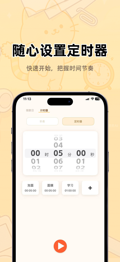 遇米倒计时App是一款实用的计时工具,专为答题场景设计。用户可在应用内设置规定答题时间,倒计时精准计时,帮助用户在限定时间内完成所设定的目标。