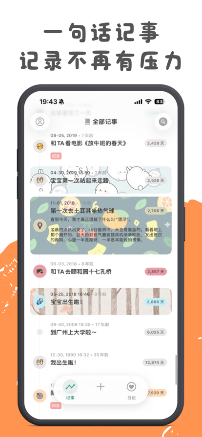 千结记,把重要的日子认真记下来。 有些日子不该被忘记。 它可能是一段关系的开始,一次见面,一句触动你的话,一个家庭时刻,也可能只是某天你忽然想记住的自己。 千结记是一款结合时间线记事、心情日记、纪念日提醒与长期回顾的记录工具,帮你把生活里的小事,安稳地放进时间里。以后再回头看,你不只会看见发生了什么,也会看见那时的自己。 为什么选择千结记? 【时间线记事,轻松记录重要日子】 用一句话就能快速开始记录,把纪念日、人生节点、关系变化、生活片段放进清晰的时间线。无论是生日、恋爱纪念日、考试、旅行、搬家,还是日常闪念,都能被好好留住。 【心情日记,记录情绪与感受】 除了记事,你也可以写下当天的心情日记,用文字保存感受,给日记加上心情标记,让情绪变化更容易回看与整理。 【标签、记事本分类整理】 支持记事本与标签管理,帮助你按主题整理不同内容。你可以把生活、感情、家庭、成长、工作分别归档,让记录更有秩序,后续查找也更方便。 【纪念日提醒,不错过重要时刻】 为重要日子设置提醒,在合适的时候收到提示。适合记录纪念日、生日、计划节点和需要反复回看的生活事件。 【搜索、日历、回顾更高效】 支持按关键词搜索内容,也能结合标签、心情等维度筛选。你还可以从日历和回顾视角重新查看过去的记录,让过往不再只是“翻不到”。 【照片与日记结合,保留更完整的记忆】 支持给日记添加照片,让文字和画面一起保存。很多年后再打开,那些模糊的日子也会重新变得具体。 【统计与长期回看】 通过统计与回顾功能,看见自己的记录习惯、心情变化和时间沉淀。记录不只是保存,更是理解自己。 【数据导出,更安心】 支持数据导出,方便你备份自己的记录,也让长期使用更安心。 如果你正在寻找一款适合记录纪念日、写日记、保存心情、整理生活时间线的 App,千结记希望能成为那个陪你慢慢记录的人。 把重要的日子,认真记下来。 把后来会想念的自己,也留在这里。 【订阅与购买说明】 年度会员为自动续费订阅,永久会员为一次性买断,具体价格以应用内购买页显示为准。 付款将在用户确认购买后从 Apple ID 账户扣除。 年度会员会自动续费,除非用户至少在当前订阅周期结束前 24 小时关闭自动续费。 系统会在当前订阅周期结束前 24 小时内进行续费扣费,续费金额以当时的订阅方案为准。 用户可在购买后前往 App Store 账户设置中管理或取消订阅。 永久会员不是自动续费产品,不会产生后续周期性扣费。 更换设备或重新安装应用后,可通过“恢复购买”恢复已购权益。 隐私政策:[https://glen-father-c47.notion.site/10b9e50ad6064cf89b29c37a78a75a74?source=copy_link](https://glen-father-c47.notion.site/10b9e50ad6064cf89b29c37a78a75a74?source=copy_link) 使用条款:[https://www.apple.com/legal/internet-services/itunes/dev/stdeula/](https://www.apple.com/legal/internet-services/itunes/dev/stdeula/)