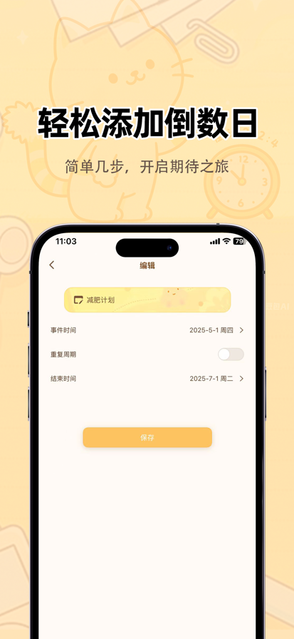 喵喵倒数是一款可爱的日期记录、倒计时&提醒的应用,无广告无社交,干净简洁。 - 日期倒计时:记录并倒计时重要的日子 - 日记计数:自动计算日期天数 - 节假日:自动更新最新节日和放假安排 - 生日本:自动导入、记录亲友生日,依次排序提醒 - 保质期:记录各种保质期 - 通知提醒:上述所有日期均可设置多个提醒 - 日期/天数计算器:计算某一天需要的天数 - 心情日记:一起写下心情日记 - 一起记录:共享纪念日,一起记录美好生活 喵喵倒数,帮您牢记重要的日子!