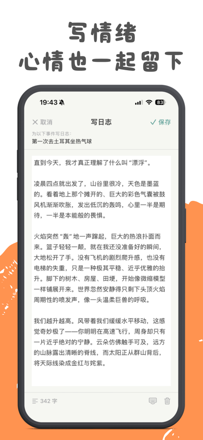 【功能介绍】 「时间轴」简洁、美观的时间轴,查看不同时间的你 「信纸」超多可爱信纸、纯色信纸选择 「照片视频」每篇日记可添加20张照片、2个视频,不再单纯的文字 「字体」超多字体选择 「日历」精准查看每一天的日记,不漏任何一天 「分类」生活、工作、爱情等日记进行归类 「隐私」隐私密码、指纹解锁保证你的日记安全 「导出」所写的日记,导出word文档到邮箱 「提醒」每日温馨提醒,让你不会忘了写日记 「过客」陌生人日记分享平台,释放最真的内心独白 「分享」分享日记到微信朋友圈、微信好友、QQ好友、QQ空间 ------------------ 吾记高级账户是自动订阅的形式,提供按月或按年订阅。 价格为¥8每月以及¥38每年。 价格可能会因为地理位置的不同而不同。确认购买时会从您的 Apple ID 帐户扣款。除非您在当前订阅期结束前至少 24 小时取消订阅,否则订阅会自动续订。系统会在当前订阅期结束前 24 小时内,从您的帐户扣除续订费用。完成购买后,您可以前往 App Store 的帐户设置来管理和取消您的订阅。 隐私政策: http://www.xiejianji.com/policy_wujiiOS.html 服务条款: http://www.xiejianji.com/terms_wujiiOS.html 会员协议: http://www.xiejianji.com/VipAgreement_wuji_ios.html 吾记,期待你的到来。 •强大【客服】支持,吾记更专业更安全: QQ群:187754040 微博:吾记君 微信公众号:吾记君 •联系我们,任何问题帮您解决,我们不仅要做好,还要服务好~