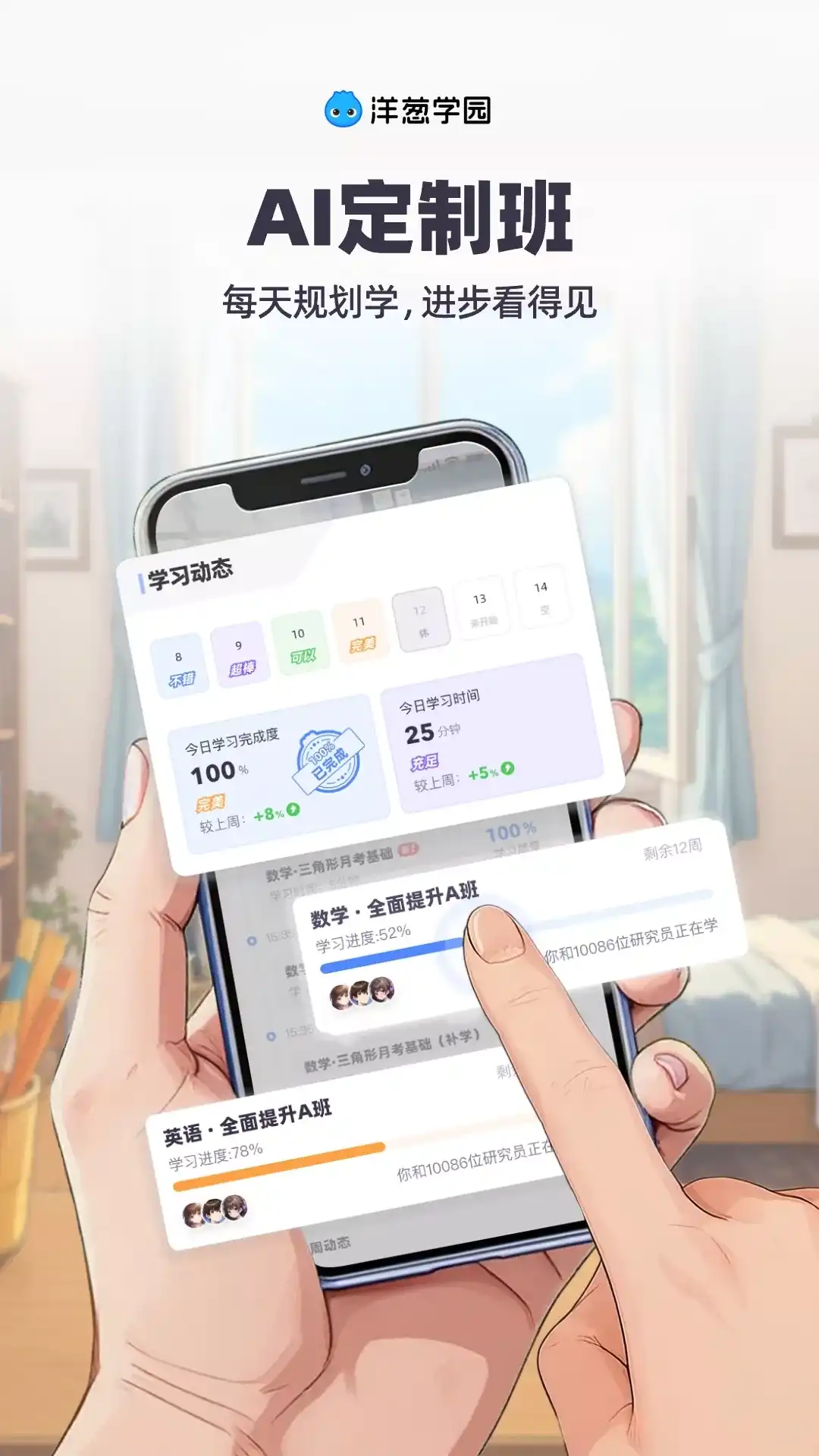 为什么1.1亿学生选择洋葱学园?如何用5分钟快速吃透学科重难知识点? 【AI拍题精学-授渔解题,真会真懂】 「拒绝直接抄答案,“拍学”一题通百题解」 行业首创【先讲知识点再解题】机制,把“被动抄答案”扭转成“主动学方法”,帮助学生学会题目背后的知识点,一通百通,进步肉眼可见。 【AI定制班-每天规划学,进步看得见】 「每天30分钟,锁定课程核心点,考试稳拿分」 洋葱AI定制班根据学生不同的学习要求量身定制专属的学习方案。从【盲目刷题】到【精准规划】,每天学习30分钟,轻松掌握核心知识点,考试稳拿分。 【AI私教动画课-卡点秒破,思路全开】 「暂停一下,AI私教1秒解答你的问题」 既有真人课的互动,又有录播课的灵活,还能随时解答学生的疑问,动画课形式带动学习兴趣。AI私教随时答疑, 打造【实时陪学+深度解惑】体系。 【中职培优-高效逆袭考入理想院校】 专为有本科 / 专科升学需求、数学英语薄弱且备考时间不足一年的中职生打造!数学覆盖小初中职全知识点、英语涵盖 6 本中职教材,零基础也能学! 洋葱学园用“动画课拆解知识点+AI私教随时答疑深度解析+游戏化学习机制”帮你提升成绩!