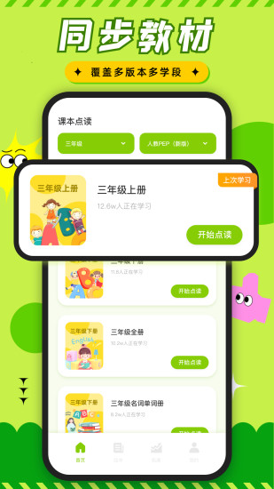 家人们,还在为孩子学三年级英语发愁吗?“三年级英语”、“英语课堂” APP 来拯救啦!它堪称 PEP《小学英语三年级(上册)》的神仙点读机,每个句子都有超标准的真人读音,英汉对照,点哪儿读哪儿,简直是 “指哪打哪” 的学习神器! 【中英翻译】能把书里人物说的话秒变中文,学习沟通不费劲; 【优质课程】不仅有课本同步内容,还有拓展课程,带你 “一路狂飙” 学英语; 【流利口语】整理常用句型,帮孩子告别 “哑巴英语”,口语说得超溜; 【作文汇总】把重要作文话题一网打尽,写作文不再 “抓耳挠腮”; 【语法汇总】将所有重要语法点清晰呈现,学习难点逐个攻克; 【单词表配音标】整理所有单词并贴心附赠音标,单词学习轻松拿捏。 快来下载一个英语课堂试试吧!快乐学英语