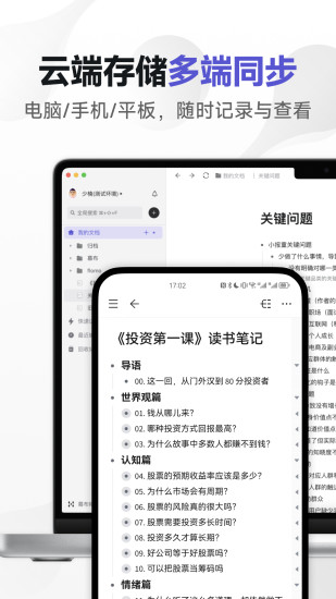 印象笔记(Evernote)是全球闻名的效率软件和知识管理工具。作为你的第二大脑,印象笔记可以帮助你简化工作、学习与生活。你可以在多种设备和平台间,无缝同步每天的见闻、灵感与思考。一站式完成知识信息的收集备份、高效记录、分享、多端同步和永久保存。“An elephant never forgets” (大象永不遗忘)。 【AI语音笔记】 - 短语音速记与会议、课程等长语音录制 - 大模型自动转写、智能润色与摘要 【多端同步】 - 手机、平板、电脑、网页等多平台同步使用 - 知识信息永久保存,随时随地查看 【信息收集】 - 集中收藏来自社交媒体的多种优质内容 - 使用印象笔记·剪藏,剪藏网页图文内容 - 拍照扫描书籍、纸张、板书和名片等,将信息数字化保存 - 使用 OCR 文字识别功能,识别并保存图片中的文字 【高效记录】 - 使用笔记本组和标签,打造专属知识库 - 笔记中支持插入Office、PDF、图片、音频等几乎所有常见文件 - 一键应用笔记模板,提高记录效率 【分享协作】 - 通过社交媒体与好友分享笔记内容 - 与团队共享笔记和笔记本,共享知识高效协作 - 工作群聊帮助