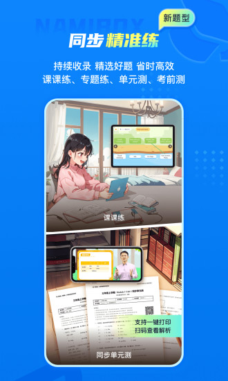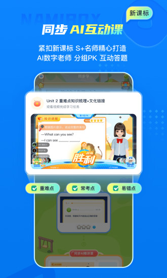 纳米盒,一款面向中小学生的课本同步闯关学的APP,覆盖语数英物化生六大学科,科学设计每一课学习路径和学习内容,一站式搞定孩子预习、复习、练习、培优所有学习场景,帮助学生建立系统的知识体系,提升综合能力与自主学习能力 【语文英语点读课本】:每天预习课文,练听力、学口语、背课文,覆盖全国95%以上地区语文英语教材版本,哪里不会点哪里,包括:跟读评测、智能背诵、听写等多种功能 【同步AI互动课】:满分精讲同步AI互动课, 紧扣新课标,S+名师研发 ,AI数字老师,分组PK互动答题,每节课5-10分钟,讲透一个重难点、常考点、易错点 【同步精准练】:根据每一课的知识点,精选好题,设置一课一练,一周一测,扫清知识盲点 【预复习笔记】:有总结,有视频、有练习、有测评, 培养学霸思维,同步归纳总结 【纳米盒荣誉】 荣获腾讯、网易教育年度影响力在线教育品牌 荣获中国好教育家长信赖教辅品牌 获得上海市“高新技术成果转化证书”认定 成为上海“在线教育”细分专委会首批成员单位 如有疑问,打开纳米盒APP联系客服