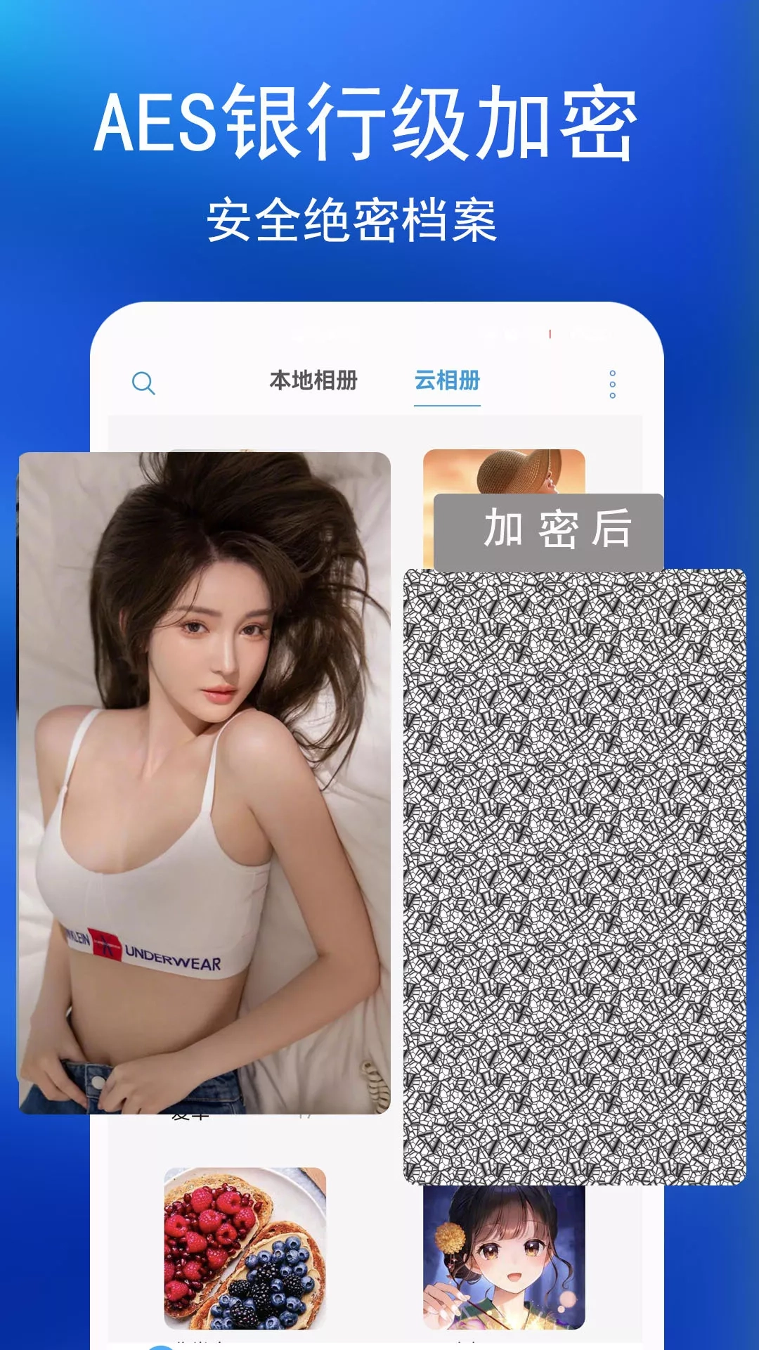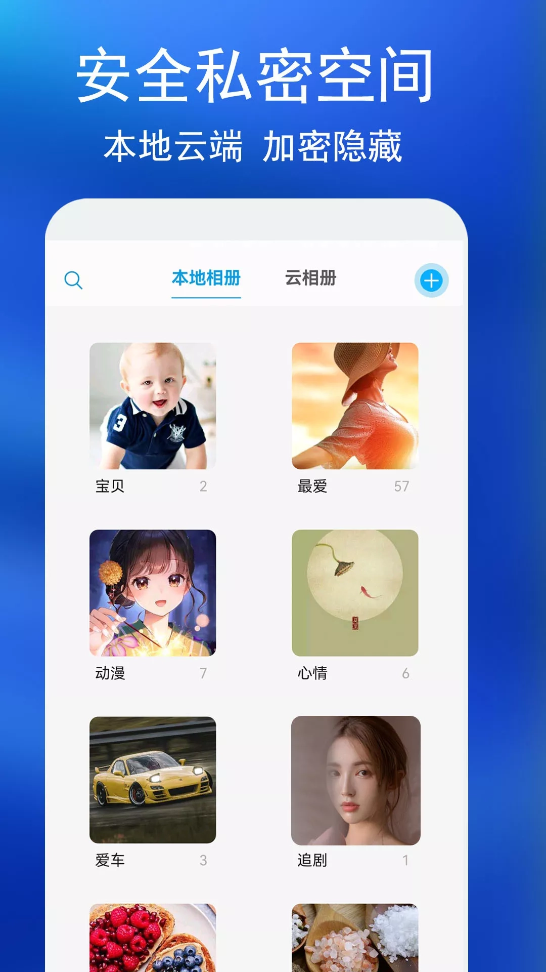 隐私相册 隐私相册,隐私图片和视频加密专家!隐藏您的重要图片、视频和文件,采用AES加密技术,绝密存贮,再也不用担心隐私泄露,并且支持一键上云,永不丢失。 【伪装计算器】 程序图标可伪装成计算器,密码隐含在计算器里。低调隐秘,忘记可通过邮箱找回密码,并可支持指纹解锁。 【绝密安全】 采用AES先进加密技术,并支持云备份,保证您的图片,视频,文件都永不丢失!再也不用担心丢失手机,重装手机了。 【多级分类】 文件夹自定义分类,一级不够,再分一级,我们支持三级分类。上万张图片轻松管理! 【排序和备注】 强大的文件夹排序,文件夹,图片想怎么排序都行。文件夹可支持备注,图片,视频也可单独备注。 【支持文件存放】 不仅支持图片,视频,还支持WORD,EXCEL,PPT,PDF,音乐,录音等各种文件管理。支持云保存,永不丢失,我们是您的隐私保险箱。 我们是苏州蓝鹤信息技术有限公司,一家10年的互联网公司,我们设有公司专业客服qq:1876712634,及时专业给您解答问题。联系邮件bluecrane1@qq.com。 快来使用强大隐私相册吧!一次试用,你就会喜欢它哦!