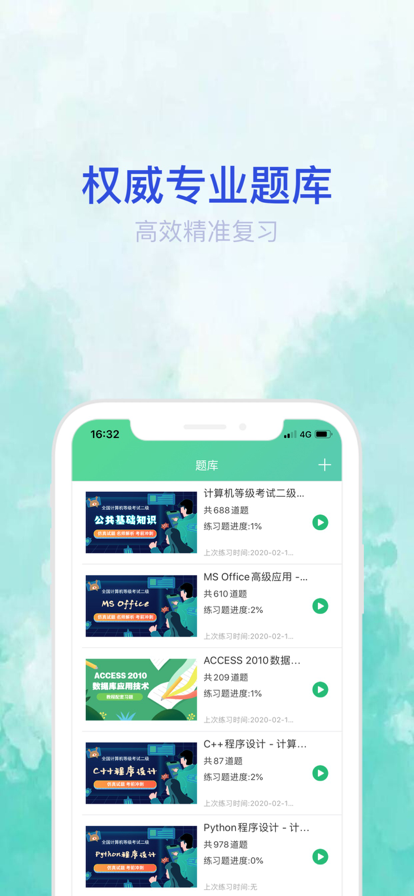 计算机二级练题狗适用于全国计算机等级二级资格考试,专为备考计算机二级的同学提供题库练习,本软件涵盖了AI智适应学习,章节练习,历年真题,预测试卷等,全面囊括进计算机二级考试的易考考点,含有题目解析,错题重做、统计分析、模拟考试等多功能模块,便于全国计算机等级考试备考人员练习复习,收录的题型满足考生的学习需要,在复习过程中查漏补缺,掌握计算机一级、计算机二级考试的重点、难点,提升考生的综合分析能力、拓宽知识面。 计算机二级练题狗,备考王牌APP,你的备考助手! 死了都要爱的计算机二级真题刷题体验,独得用户恩宠,让考生能够切实的接近考试,熟悉考点,安心备考。 计算机考试分为计算机二级Ms office、计算机二级WPS office、计算机二级Photoshop、计算机二级Ms office、计算机二级WPS Office、计算机二级Python语言程序设计 、计算机二级C语言程序设计,全国计算机等级考试就用计算机二级练题狗。 【核心功能】 >>练习: 【章节练习】题库内所有科目的章节练习均可免费使用。 【历年真题】收录近几年计算机二级考试真题,与考试亲密接触。 【高频题目】大数据分析计算机二级高频题目,备考重点难点一网打尽。 【错题巩固】独特错题巩固功能,清除您备考路上的顽固障碍。 【学习资讯】备考资讯,官方通知,复习技巧尽在计算机二级练题狗。 【AI智适应学习】计算机二级练题狗APP根据考生在线做题、模拟训练等数据,提供精准的能力评估报告,智能分析薄弱环节,针对性的进行练习。 【技术支持】鼎维云课堂 【联系我们】 微博:@练题狗 微信:liantigouapp 客服电话:+8618290463382 (工作日9:00-18:00)