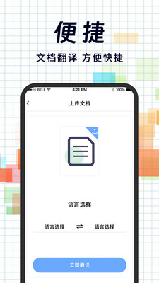 【拍照翻译】英文、日文、韩文等多国语言,拍照翻译成中文 【原声英语视频】不定期更新资源,含有字幕 【图片翻译】可以对图片中的文本内容进行文字识别、语种自动检测并翻译成目标语言,支持译文实景回填 【文档翻译】支持Word、PPT、Excel、HTML、XML、TXT、PDF等格式和200+语种互译。支持源语言自动检测,只需上传文档并指定目标语言、文档格式等参数,即可快速获得翻译后的文档。 【中文转译】支持中文文档拍照翻译成英语、日语、韩语,支持汉字转拼音 【语言互译】多国语言互相翻译,支持多国/地区语言互转,中文、粤语、文言文、英语、日语、韩语、俄语、德语、法语、泰语等 【英文美文】每日一更,英文美文欣赏、阅读 【云端保存】识别结果、翻译结果一键保存云端,随时查看 【方言学习】在这里可以学习广东话、闽南话、潮州话、客家话、上海话、苏州话、无锡话、南京话等。 一个字一个字教你发音哦! 【语音翻译】语音翻译,使用语音识别技术,识别完成一键翻译 【语音合成】中文、英文场景,翻译结果新增语音合成,语音播放功能 【小工具】全面支持图片批量生成PDF功能,支持文字生成PDF功能 【关于我们】 ======拍照翻译APP,拍一下就知道====== ======联系我们:2436411661@qq.com======